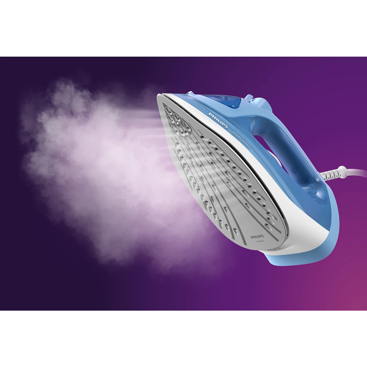 Powerful steam to tackle every crease Steamboost up to 160g 2200 W power 35 g/min continuous steam 160 g steam boost Ceramic Key Features: Up to 35g/min continuous steam for crease removal 4 steam settings to tackle creases on all ironable fabrics Non-stick soleplate for easy and fast gliding 300 ml water tank for longer ironing sessions Calc Clean function for durable performance Drip stop technology to prevent leaking while ironing Large hole for easy water filling Kills up to 99.9% of bacteria*
