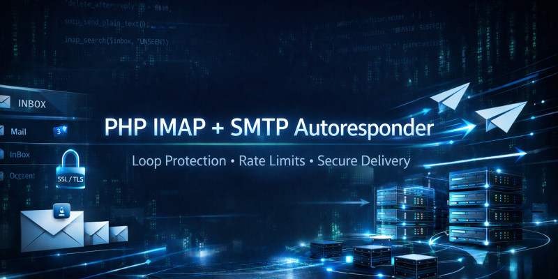 PHP IMAP And SMTP Autoresponder. Secure multi-mailbox auto-reply script with loop protection, bounce detection, rate limits, and file-based state. No DB required.