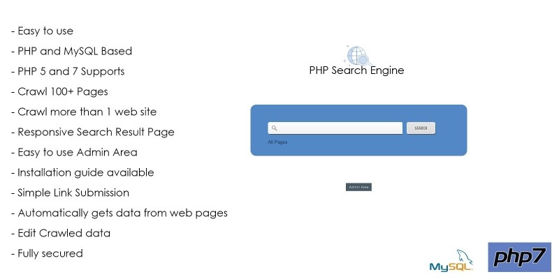 PHP Search Engine - MySQl based Simple Site Search. PHP Search Engine is seach script to use inside a web site with Simple Crawling System