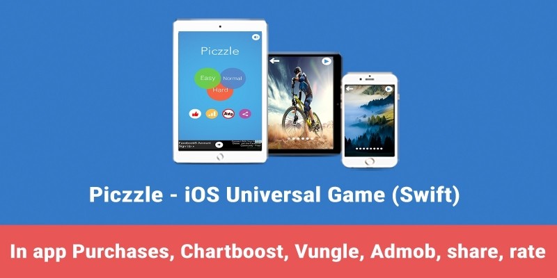 Piczzle - iOS Swift Game Source Code. Piczzle is a puzzle game with 3 levels: easy, normal and hard. You need to join piece to have a full picture.