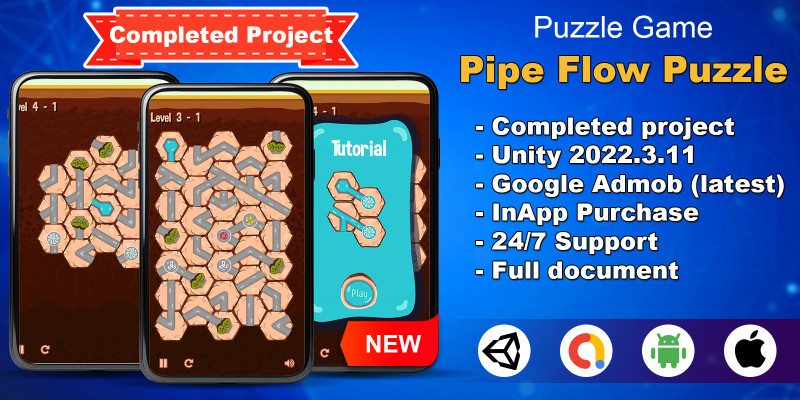 Pipe Flow Puzzle - Unity – Admob. Connect the pipes. Guide the water. Save the sprouts.