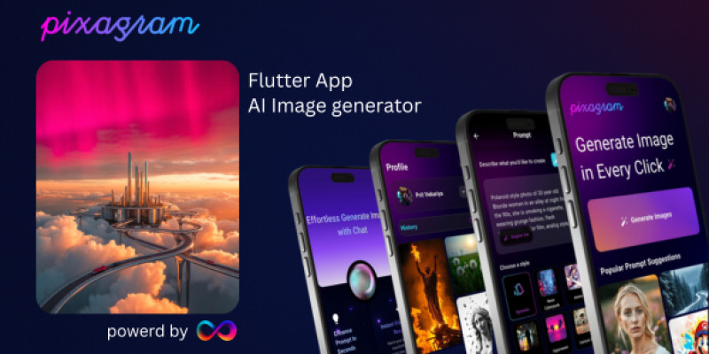 Pixagram – Modern AI Image Generator Flutter App. Generate stunning AI images from text in seconds. Pixagram is a Flutter app with explore feed & stylish AI art tools.