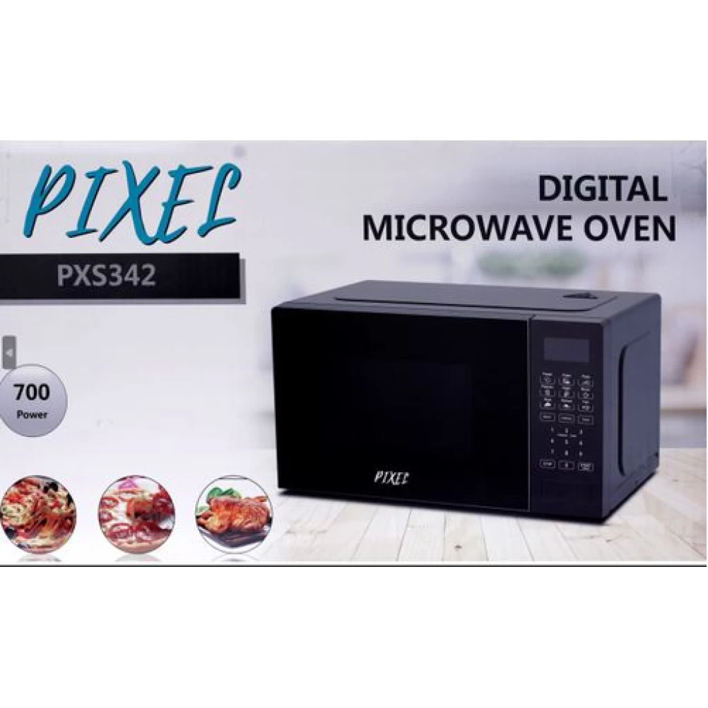 PIXEL 20 Litres Silver Mirror Microwave 700W GOLDEN PROPORTION TRANSFER HEAT Cook your food without reducing its natural nutrients, preserve important vitamins & minerals while keeping your food tender & juicy. DURABLE DOOR DESIGN Improved & long-lasting door durability thanks to the superior materials used to manufacture our product. 360° ROTATING HEATING PLATE Heat your meals evenly with the 360° plate rotation. DEFROST FUNCTION Defrost deep frozen food easily.Power: 700W Preset Menus: 6 PRESET COOKING MENUS Auto Defrost Function: YES Control Type: DIGITAL Features:Model: PXS342Colour: SilverSize: 20L Product/Packaging Information Product Weight: 12.5 kg Product Dimensions:259mm(L) x 328mm(W) x 440mm(H) Shipping Dimensions:291mm(L) x 380mm(W) x 488mm(H) Stylish and elegant design makes the this Microwave Oven a lifestyle item suitable for any kitchen. It features with mechanical operation.