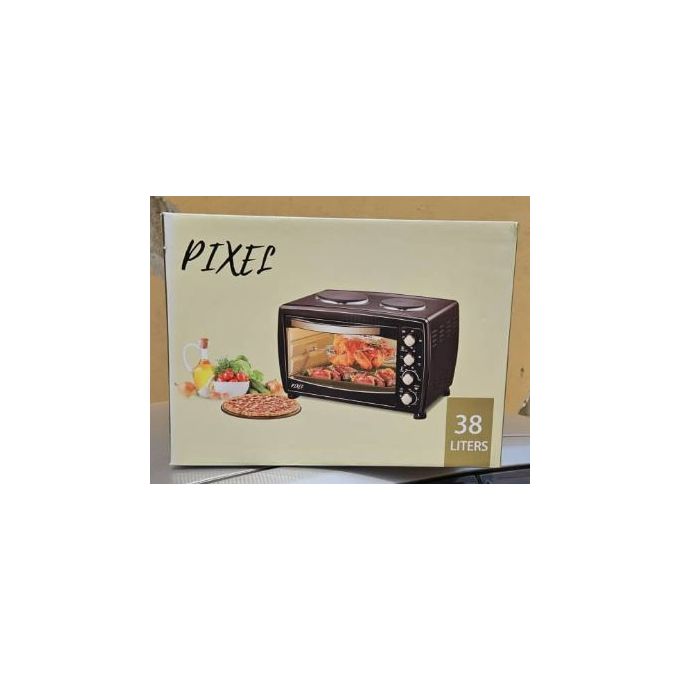 Pixel 38 Litres Oven With Two Hot Plates Rotisserie – Black Pixel 38 Litre oven with Two Hot Plates- Black : Type : Oven & hot plate Cavity Capacity : 38 l Maximum Microwave Power : 1300 Warranty : 1 year on service, 2 years on parts and on magnetron ThePixel 38 Litres Oven – Black is a stylish and efficient appliance that can help you cook your meals faster and better. It has a38 L cavity capacity and a maximum microwave power of 1300, which makes it perfect for small to medium-sized families. The microwave has 5 power levels that allow you to cook your food to perfection. It also has a convection type that ensures even distribution of heat and faster cooking times. The microwave control type is electronic, which makes it easy to use and operate. The microwave has a sleek black color that adds a touch of elegance to your kitchen. The microwave comes with a 1-year warranty on service and 2 years on parts and on magnetron, ensuring that you get the best value for your money. Key Features: Pixel 38 Litres Oven With Two Hot Plates Rotisserie – Black