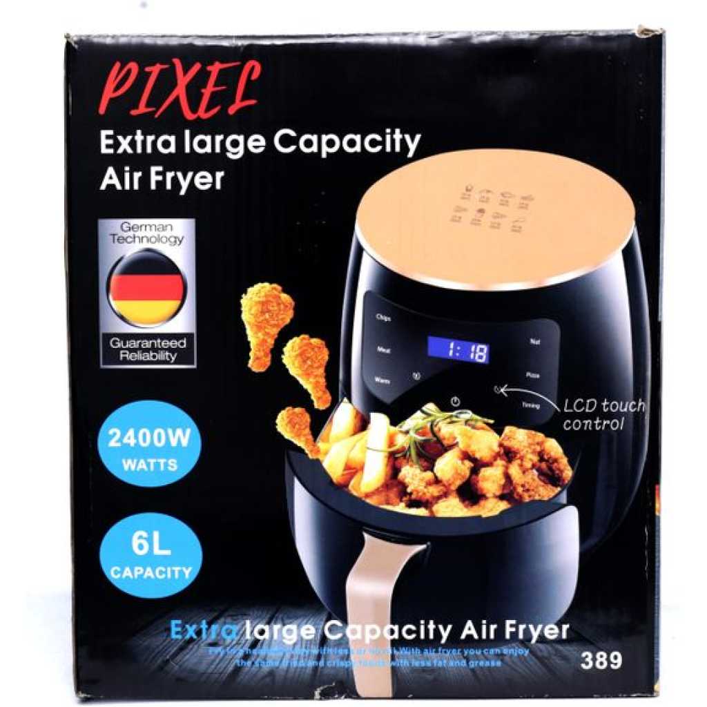 Pixel 6 Litres Healthy Oil Free This New elegant, high quality Air fryer Healthier Oil Free Fryer-Chip & Fries Maker is a guilt-free food fryer which makes everything 80 percent less fatty. It has a Large Capacity. This Air Dryer is a Nonstick Pan For Frying, Deep Fry, Roast, Grill and Cook as wel .Air fry your favorite foods with little to no oil. Thanks to the rapid air technology in this air fryer there is no need to use excessive amounts of oil when cooking your favorite fried foods. With a one touch presets for perfectly cooked food every single time whether it’s fries, chicken, roast, steak, fish, shrimp, cheese melt or pizza. It’s Easy-to-use dual controls allow you to set temperature to 90-200 degrees and cook from 1 30 minutes. The simplicity helps you when following along to recipes found online or in other recipe books. Comes with a detachable basket to help transport hot foods onto plates making cooking safer for you and your family. The top has a handle that makes it easy to carry. Has an indicator light lets you know when desired temperature has been reached. Just set the dial to the desired temperature and wait a couple seconds until light comes on. Make an order today for this high quality Air fryer through TilyExpress and have it delivered to your doorstep. This is an original and very durable product you can trust. It has a detouchable frying basket that eases cleaning 50% faster frying and energy saving It has 30 min timer with auto power off If You are looking to fry, grill or bake the Pixel air fryer is the way to go.