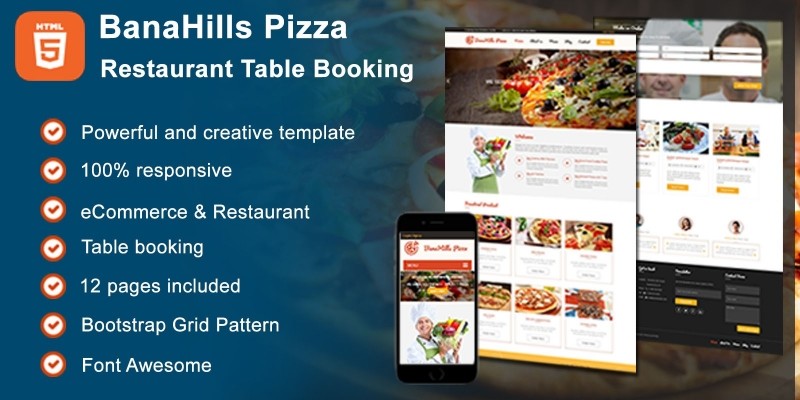 Pizza - Restaurant Table Booking HTML Template. BanaHill Pizza is a template that contains 12 pages. Built by Bootstrap 3, compatible with all screen sizes.
