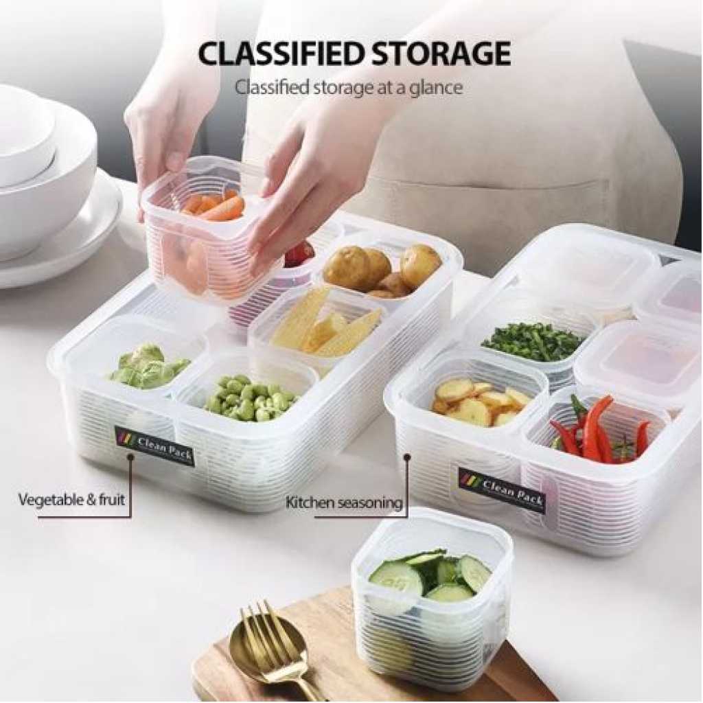 Credly Fridge Plastic Storage Box with Handle Plastic Storage Box with Cover Fruits & Vegetable Storage Storage Box Our plastic containers with handles are made of high quality plastic. This storage container set is airtight, reusable & lightweight, and easy to carry. Our clear food containers are easy to use and to clean. These containers with lids have comfortable handles for effortless carrying and stacking. This kitchen storage set is perfect for refrigerator food organizing. Our plastic storage containers have the transparent body helping you to find food easily. Store kitchen and pantry supplies like chips, cookies or a large soup, rice, flour, sugar, and beans in these food storage container sets. Side-locking lids seal these containers tightly, protecting your food from air and water while keeping it fresh. Great inside the refrigerator or freezer that organize them and keep the yogurt, meat, cheeses, eggs, fruit or vegetables fresh. These are also used for table and desk to store and organize your food, or deal with small things. Less Waste :: Having easy access to your foods will likely results in less foods becoming ‘lost’, then thrown out, from your refrigerator.