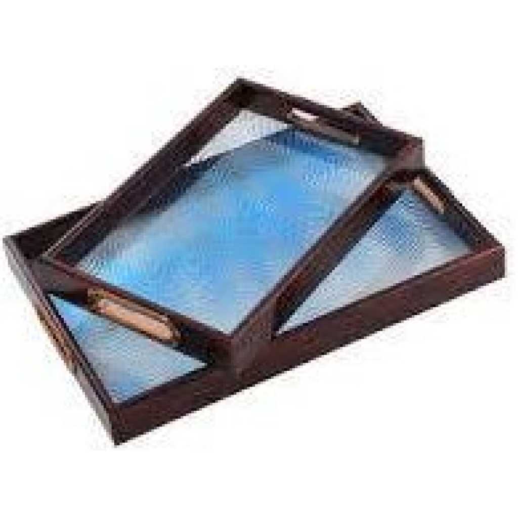 Plastic Glass Cup Holder Tray Tea CakebServing Tray Set (2 Pieces) –Decoration Trays With Handle And Non-Slip Surface - Storage Tray For Food Plates Drinking For Hotel Beauty Salon And Home