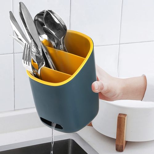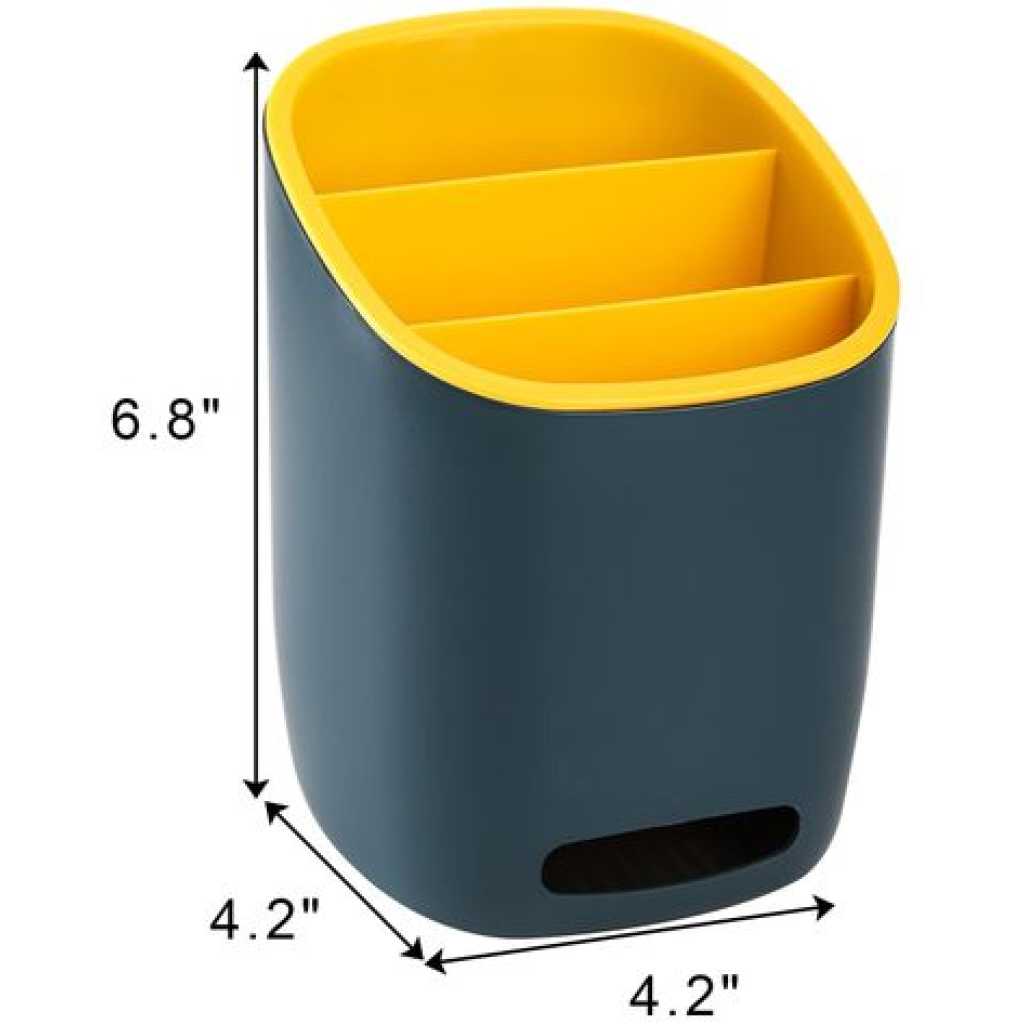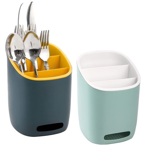 Plastic Kitchen Utensil Holder Cultery Drainer Caddy, 3 Divided Drying Sink Countertop Flatware Organizer For Spoons, Forks, Knives- Multi-colour Hacaroa 2 pack plastic kitchen utensil holder with 2 colors (dark blue and light blue), measures 6.8″ H x 4.2″ L x 4.2″ W, large enough for you to store all the kitchen utensils. Our 3 divided chopsticks holder is made of durable shatter-resistant plastic, can be used for a long time. And with an open design, it is easy to get the cultery. 3 Compartments: Hacaroa 2 pack flatware caddy enables you to classify your utensils and keeps items separated and tidy. And the inner divided tank is removable and easy to clean thoroughly. Detachable Design: The cultery storage organizer has two detachable layers. The outer tank has water check mouth and the inner tank has drain holes to get rid of water and prevent moisture. The detachable cultery drainer can not only be used in the kitchen to organize most cooking utensils, whisks, tongs, forks, spoons, spatulas but also used as container on the desk for pens and scissors Detachable Design, Drain Holes InsideThe cultery drainer caddy is detachable. The outer tank has water check mouth to help you pour the drained water in time. With drain holes at the bottom of the inner tank, your washed utensils can dry quickly with air circulation to prevent moisture With detachable design, it is easy to clean. Both functional anf practical! It is stable enough to hold lots of spoons, knives and forks without tipping over. 3 Compartments3-compartment to make it easier for you to sort your appliances and maximize your countertop space. Open Design With an open design, it is easy to get the item you want in the detachable cultery drainer. Multiple Use Our sliverware caddy can be used for spoons, knives, chopsticks, etc. Also used for pens, remote controls, scissors,