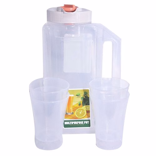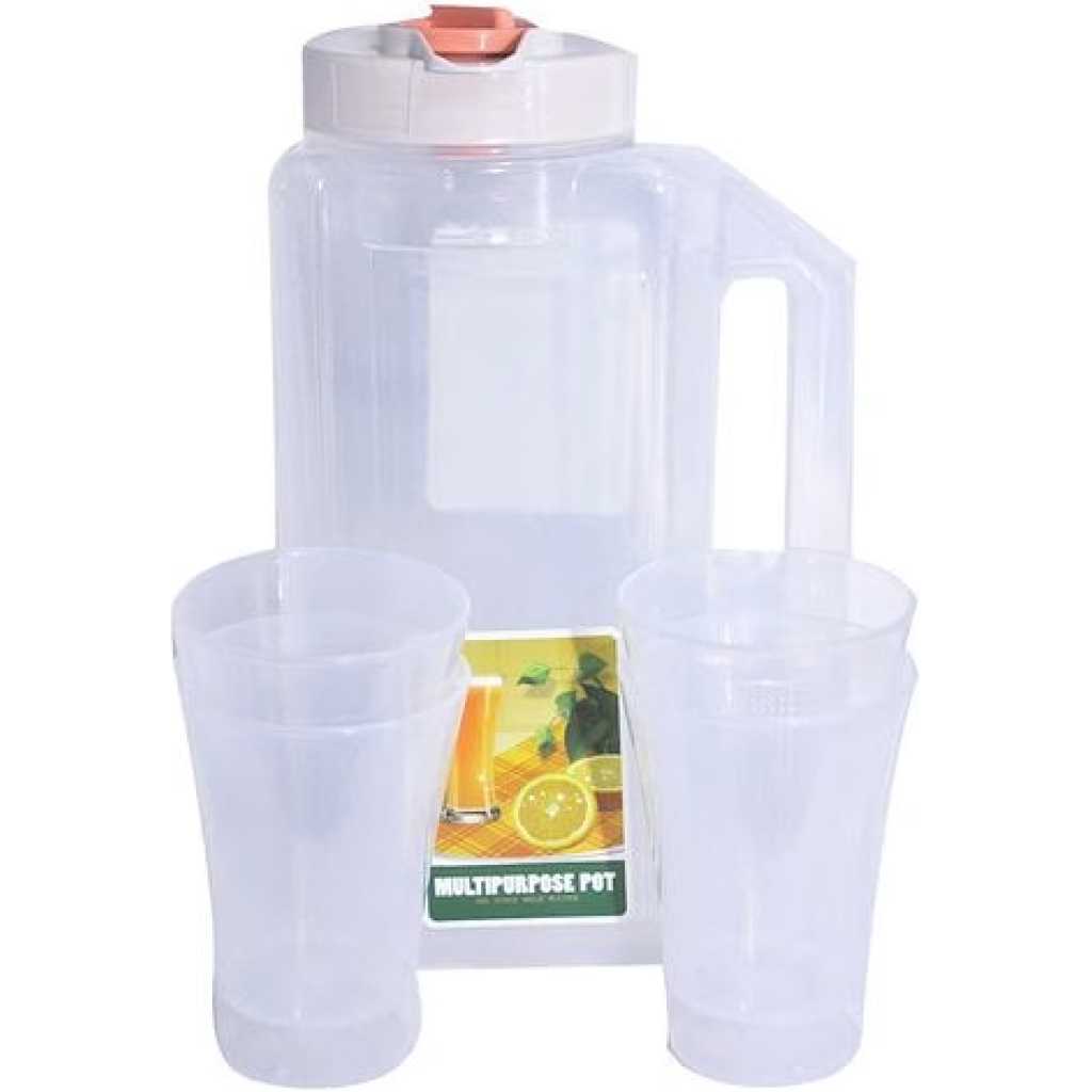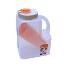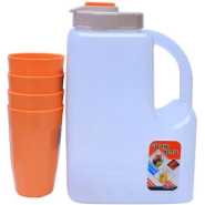 Plastic Water Fridge Bottle with 4 Glass, 1.5L – Orange, White This beautiful set has one bottle and 4 glass.They are all made of very strong material,which when handled with care will last for a very long time.
