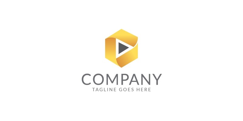 Play Time Logo Template. Logo design template featuring a yellow hexagon with play symbol in the centre