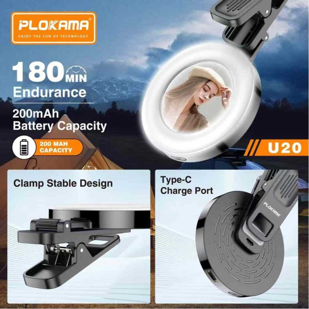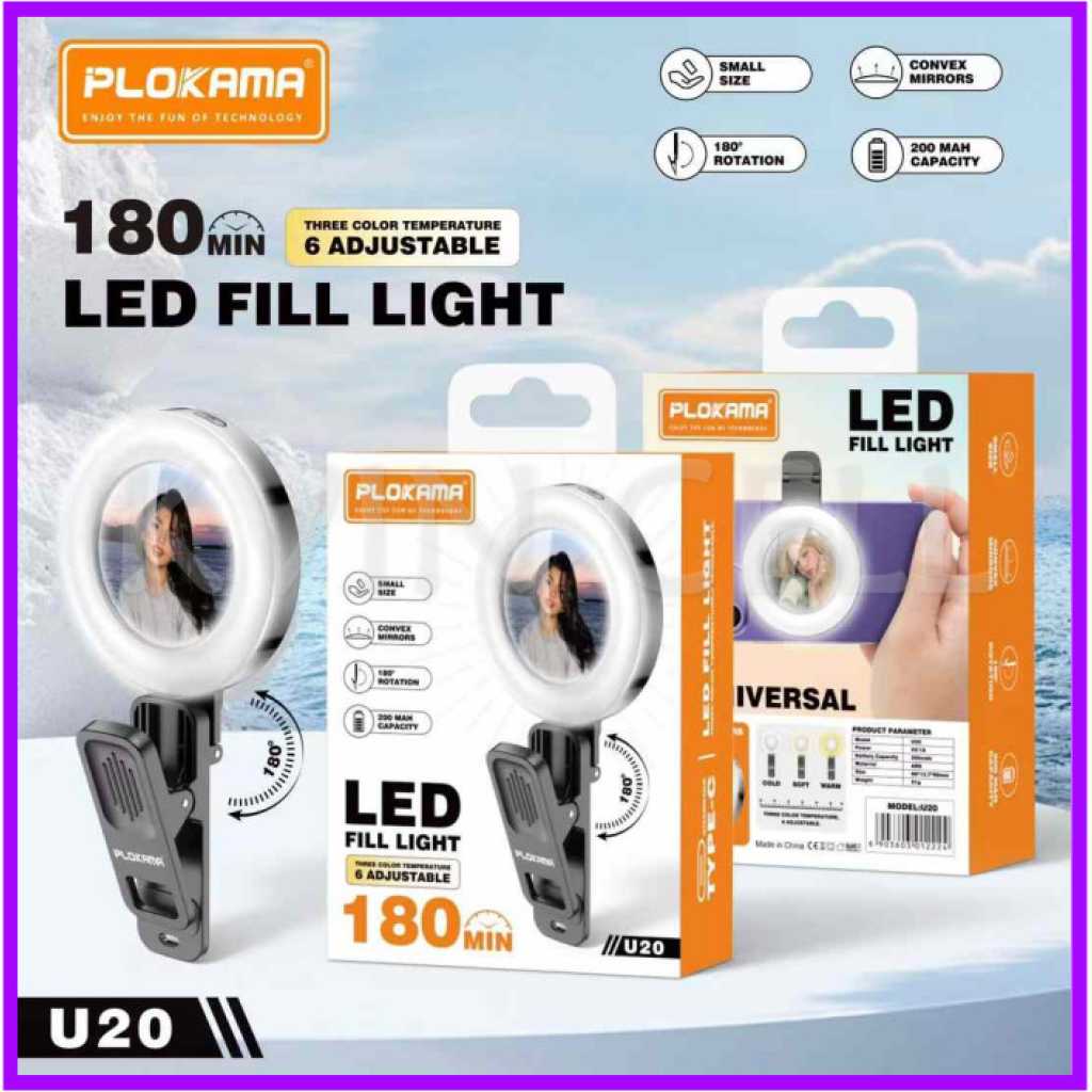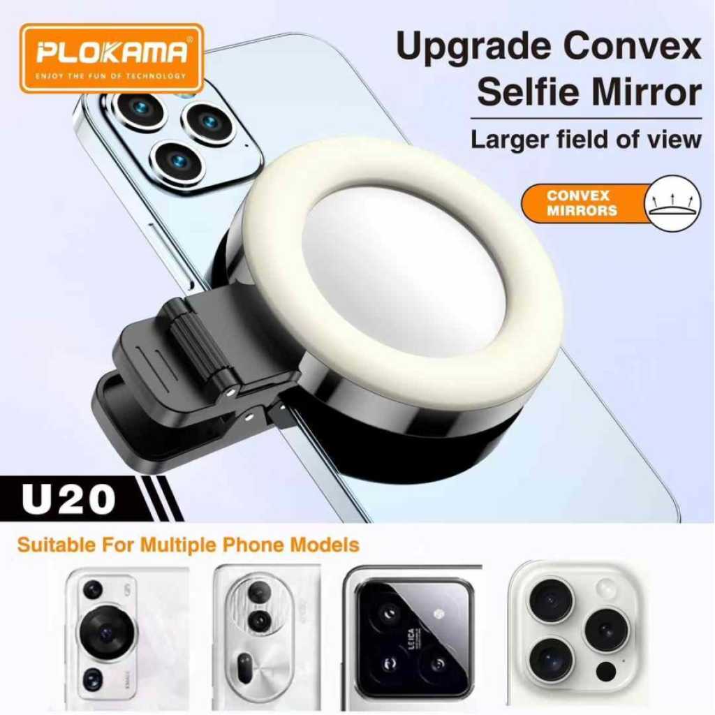 PLOKAMA U20 Ring Led Mirror Clip LEDMirror Clip Mobile (For Selfies / Self-Records) Product Specifications: Variation: Mirror Clip + Ring Led (Rechargeable) Color: Black Glass Type: Wide View // Wide View Material: ABS + Glass Product Weight: 50.3 g - Can be used for all brands & types of cellphones - Using a CLIP or Clamp System - Easy to install & remove - The lamp can be recharged Every Purchase You Will Get: 1 Pcs - Mirror Clip Ring LED 1 Pcs - Microfiber Glass Wiping Cloth 1 Pcs Type C Casing Cable Key Features: PLOKAMA U20 Ring Led Mirror Clip LEDMirror Clip Mobile (For Selfies / Self-Records) Product Specifications: Variation: Mirror Clip + Ring Led (Rechargeable) Color: Black Glass Type: Wide View // Wide View Material: ABS + Glass Product Weight: 50.3 g - Can be used for all brands & types of cellphones - Using a CLIP or Clamp System - Easy to install & remove - The lamp can be recharged Every Purchase You Will Get: 1 Pcs - Mirror Clip Ring LED 1 Pcs - Microfiber Glass Wiping Cloth 1 Pcs Type C Casing Cable