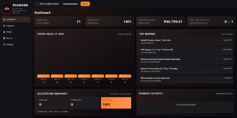 PlugHub Inventory Management System. A powerful Django-based inventory system that simplifies stock tracking, sales management, and reporting.
