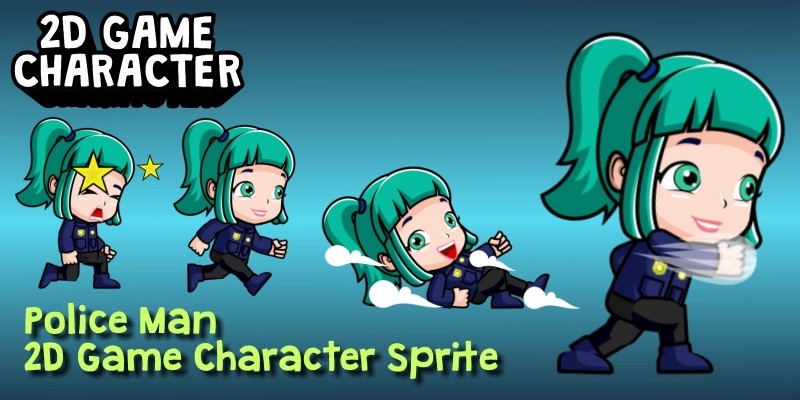 Police Woman 2D Game Character Sprite. for your next police in your next platformmer game!