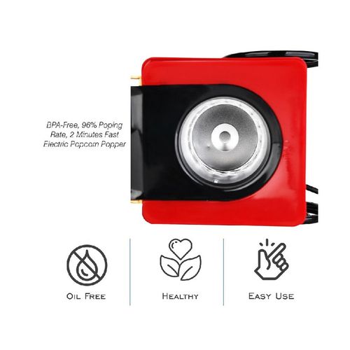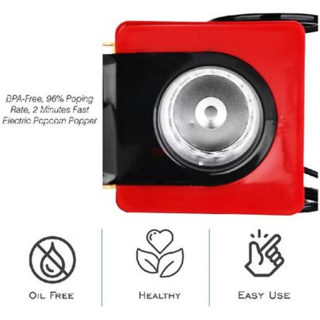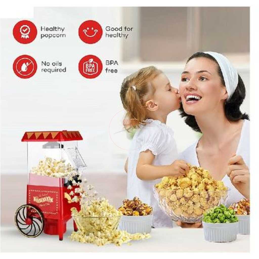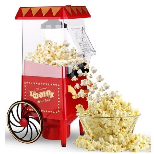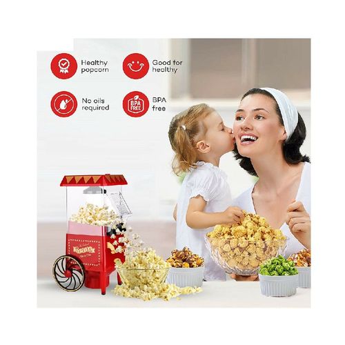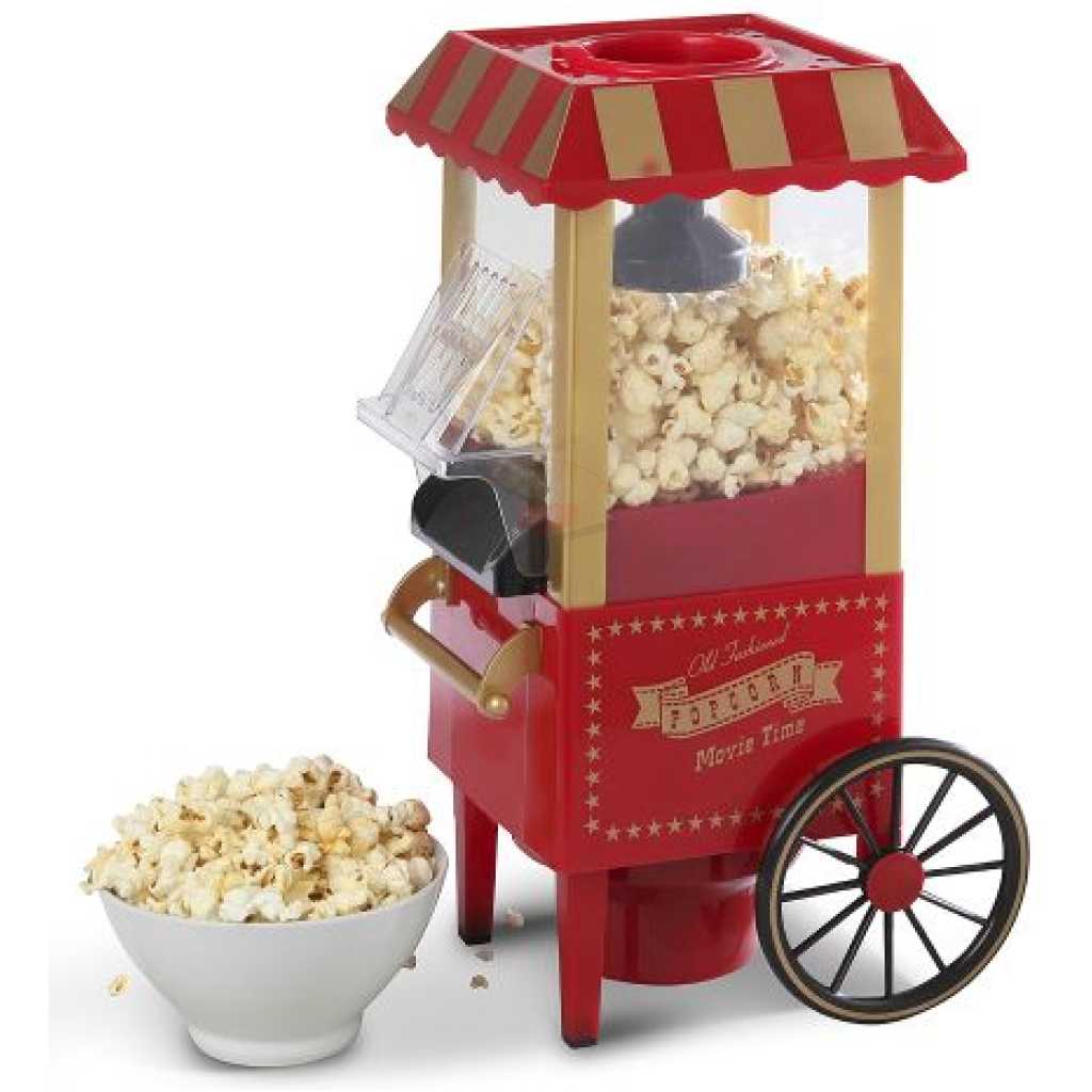 Key Features: Popcorn Maker Machine With Wheels- Red Style: Old-Fashioned Material: Plastic Power Source: Wall Plug-In Capacity: 3-1/2 Oz Type: Electric & Air Popcorn Makers Features: Dishwasher Safe, Easy Clean, Electric Color: Red Power: 1400 W Making Method: Hot Air