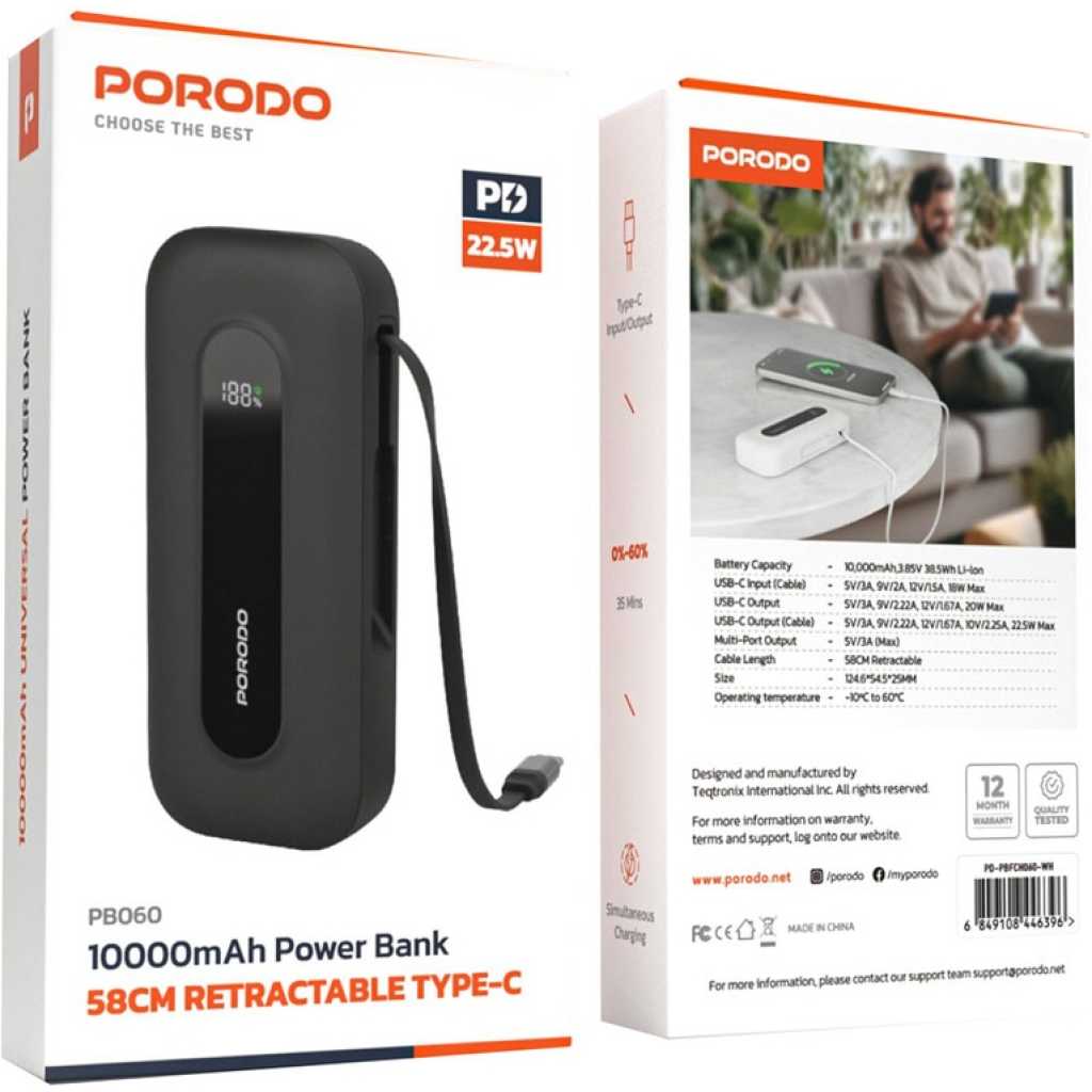 The Porodo 10000mAh Power Bank 58CM Retractable Type-C is designed for the modern user who values efficiency and convenience on the go. This power bank is crafted to provide a reliable energy source, capable of charging multiple devices simultaneously without compromising on speed or performance. With its sleek and compact design, it fits effortlessly into bags or pockets, making it an ideal companion for travel, work, or daily commutes. The retractable cable feature offers exceptional convenience, allowing users to enjoy a tidy and organized charging experience. Engineered to adapt to a wide range of devices, this power bank is a versatile solution that meets the demands of today’s fast-paced lifestyle. Its robust battery capacity ensures that devices stay powered throughout the day, allowing users to stay connected without the fear of running out of juice. Whether navigating busy days or embarking on weekend adventures, the Porodo 10000mAh Power Bank 58CM Retractable Type-C provides the perfect blend of functionality and portability, keeping essential devices charged and ready for action.