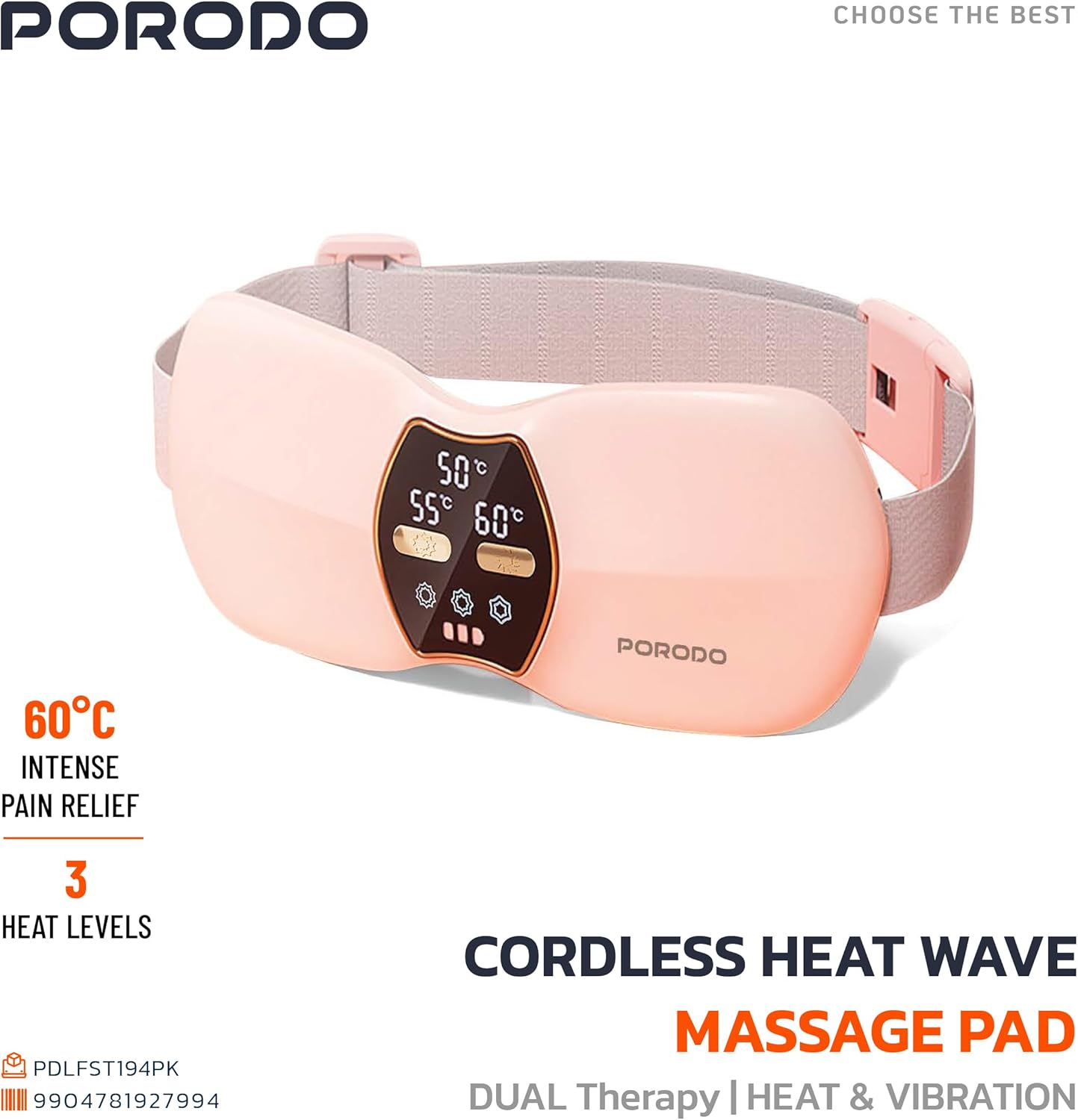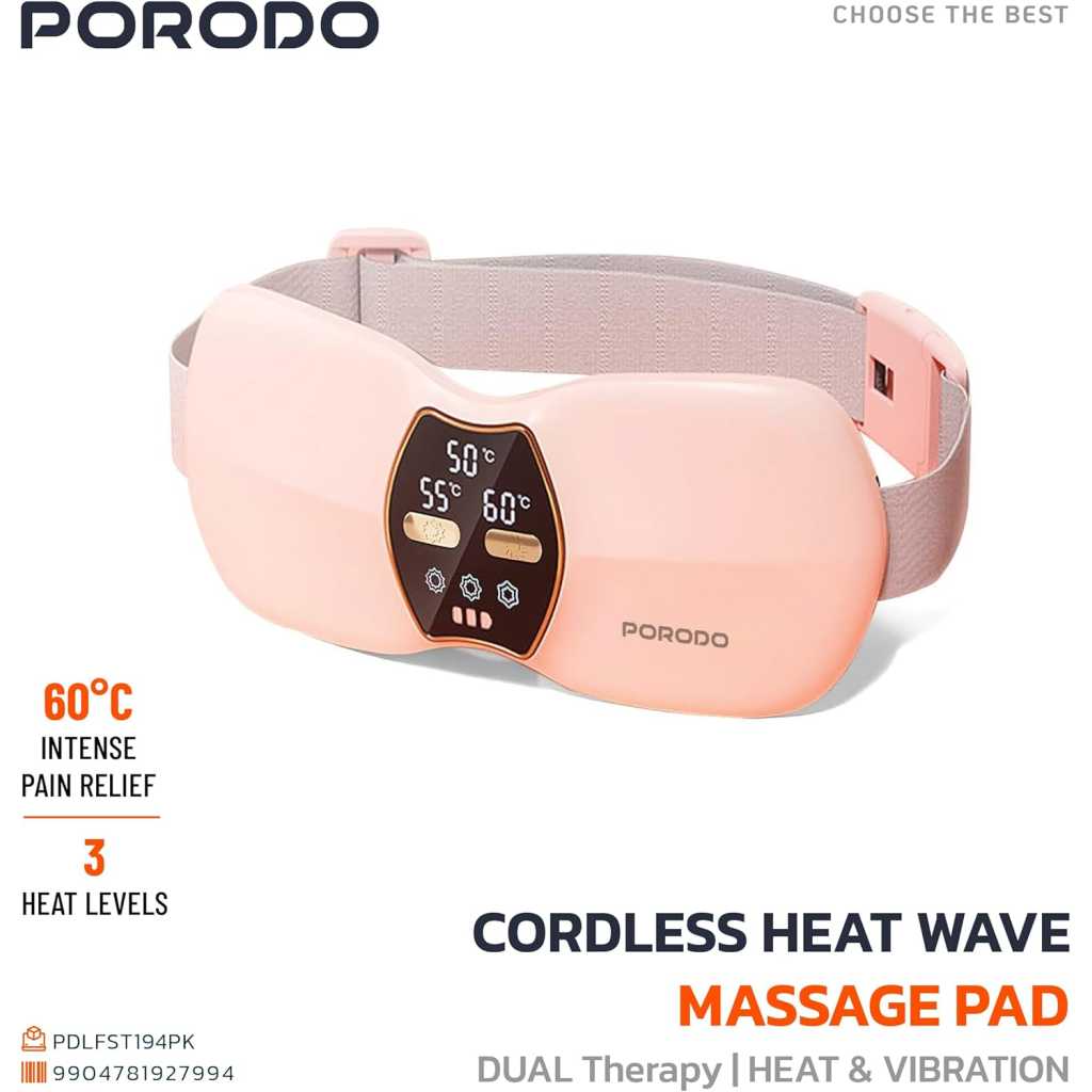 porodo Lifestyle Cordless Heat Wave Massage Pad Dual Therapy with Heat and Vibration for Period Pain, Cramps & Back Pai, Pain Relief Menstrual Heating Pad / Rechargeable Massager with 2500mAh Battery