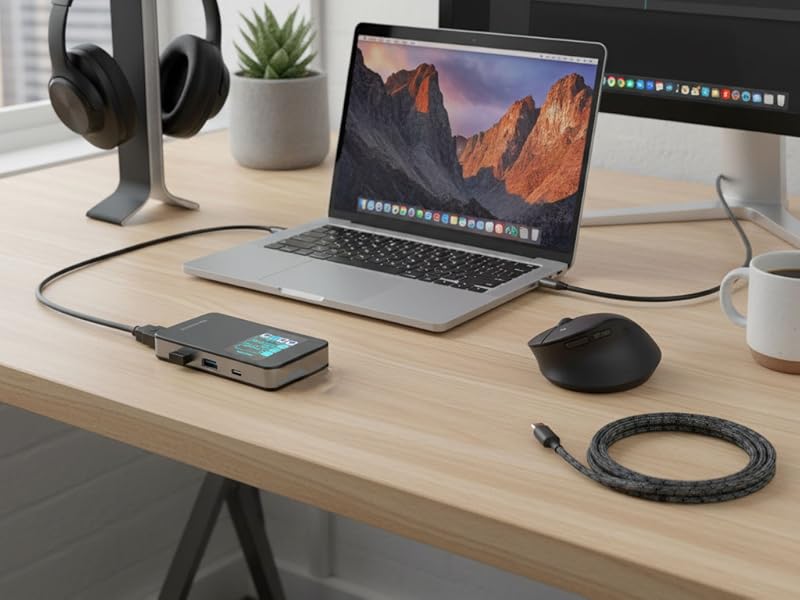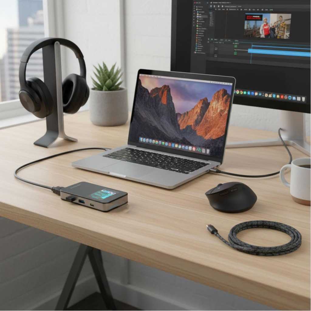 Key Features: 【– – 】Expand your laptop or desktop with multiple essential ports in one sleek, compact hub. 【 】Rapidly charge Type C devices, keeping your gadgets powered anytime, anywhere. 【 – 】USB 3.0 port delivers up to 5Gbps for quick file syncing and high-speed data transfer. 【 】Monitor real-time power delivery and device connection at a glance. 【 】Compatible with iPhone, MacBook, Mac Pro, desktop PCs, and other Type C devices. 【@ – 】Connect an external monitor or projector with 4K resolution support for crisp visuals. 【 & 】Premium materials with a stylish black finish ensure durability and elegance. 【 】Enjoy 12 months standard warranty plus an additional 12 months extended warranty for peace of mind.