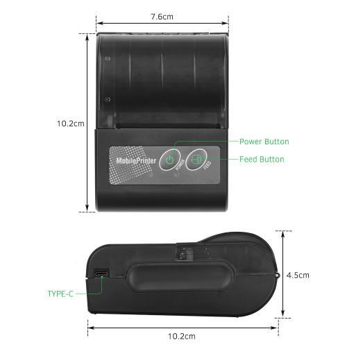 Portable 58mm Wireless BT Mobile Thermal Receipt Printer. Features: Dual-mode design, support USB wired and BT connection, can be printed at a distance, more convenient to use. Thermal printing, no ink cartridge/carbon ribbon required, saves the cost of expensive consumables, clear printing. 58mm paper width, 48mm effective print width, support 203dpi(8dots/mm) resolution. Small size and lightweight, easy to carry around. Built-in 1500mAh large capacity rechargeable lithium battery, low power consumption, long standby time. Wide application, widely used in supermarket, restaurant, retail store, warehouse, parking lot, etc. Features: Dual-mode design, support USB wired and BT connection, can be printed at a distance, more convenient to use. Thermal printing, no ink cartridge/carbon ribbon required, saves the cost of expensive consumables, clear printing. 58mm paper width, 48mm effective print width, support 203dpi(8dots/mm) resolution. Small size and lightweight, easy to carry around. Built-in 1500mAh large capacity rechargeable lithium battery, low power consumption, long standby time. Wide application, widely used in supermarket, restaurant, retail store, warehouse, parking lot, etc. Specification: Color: Black Print method: Thermal print Connection type: BT/USB Paper width: 58mm Print width: 48mm Print speed: 60mm/s Roll diameter: Max. 40mm Resolution: 203dpi (8dots/mm) Battery capacity: 7.4V/1500mAh System supported: for Android, iOS, Windows Item size: 10.2 * 7.6 * 4.5cm /4.02 * 2.99 * 1.77in Packing list: 1 * Thermal printer 1 * USB cable 2 * Roll of paper 1 * User manual
