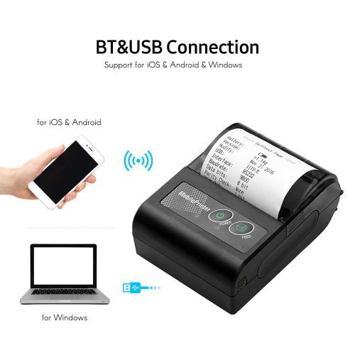 Key Features: Portable 58mm Wireless BT Mobile Thermal Receipt Printer. Dual-mode design, support USB wired and BT connection, can be printed at a distance, more convenient to use. Thermal printing, no ink cartridge/carbon ribbon required, saves the cost of expensive consumables, clear printing. 58mm paper width, 48mm effective print width, support 203dpi(8dots/mm) resolution. Small size and lightweight, easy to carry around. Built-in 1500mAh large capacity rechargeable lithium battery, low power consumption, long standby time. Wide application, widely used in supermarket, restaurant, retail store, warehouse, parking lot, etc.