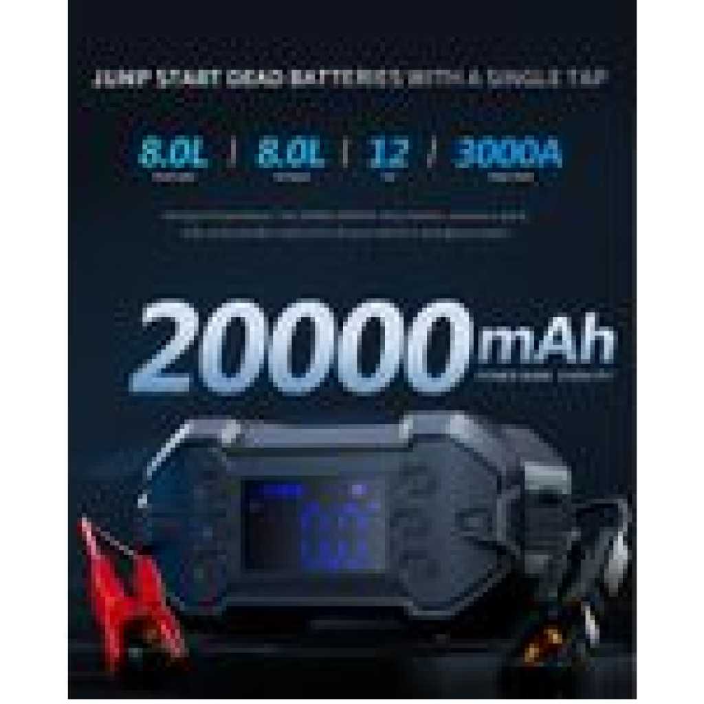 Key Features: Versatile Emergency Tool: The Green Keeper Jump Starter is a powerful Portable Car Jump Starter with a peak of 3000A, designed for 8.0L Gas & Diesel Engines. Ideal for extreme weather conditions and emergency situations, ensuring a reliable start every time. Start Flat Battery: Our exclusive force start feature allows you to start your car even when the battery is completely drained at 0 voltage. This advanced technology sets our product apart from most jump starters, offering superior performance in critical moments. Advanced Safety Features: Equipped with an intelligent protection system for a safe Jump start process. Features include anti-spark, reverse polarity protection, and automatic power cut-off, providing a worry-free experience. Robust Power Bank: Not just a Car Starter, the Green Keeper Jump Starter also serves as a potent Power Bank, ready to charge your smartphones, tablets, or other USB devices, keeping your gadgets powered on the go. Integrated Air Compressor: This Jump Starter comes with a built-in high-efficiency air compressor, perfect for quickly inflating tires, sports equipment, and more, making it a must-have for outdoor activities and urgent inflation needs. Compact Design for All Environments: Its compact design makes it easy to carry and store. Durable casing and user-friendly interface make it an ideal companion for drivers in any weather condition.