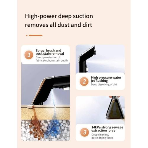 Key Features: ????SUPER SUCTION: The Ailltopd carpet cleaner machine is equipped with a 450W motor, which can provide a super suction force of 11Kpa. which can quickly and deeply handle various stains and stubborn paint, such as beverages, juice, pet urine, dust on sofa covers, etc. It is also equipped with a strong suction system, ensure that the carpet can dry quickly after cleaning, allowing it to quickly return to its normal state, making your home environment healthier and safer. ????DUAL WATER TANK SYSTEM: 0.8L sewage tank and 1.8L clean water tank are stored separately, allowing you to easily disassemble the water tank for filling, draining, and cleaning. Tips: The water volume of the sewage tank can’t exceed the MAX line, otherwise it may cause the suction of the carpet cleaner to stop. The clean water tank can be added our equipped agent and sprayed evenly on the carpet or pad to ensure better cleaning results. (Please refer to the instructions on the agent for ratio.)