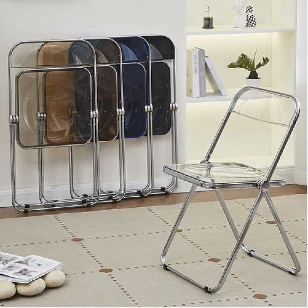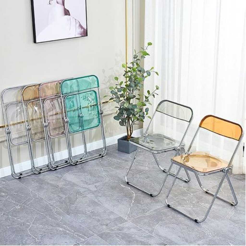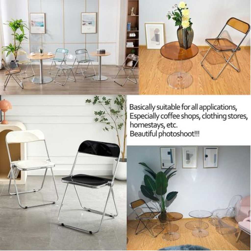 Key Features: 1. MODERN DINING CHAIR – Inspire a visually clean and creative dining or work environment with our chair. The sheer design and slim silhouette effortlessly highlight your modern home decor. 2. Material and size: the material is metal + plastic, the size is 47 x 46 x 74 cm, the ergonomic backrest design, the simple and modern design, the backrest adopts an ergonomic arc design, which can support your back to ensure comfort when sitting for a long time. 3.No assembly required: comfortable acrylic seat and backrest Plastic caps on each leg to protect the floor. No assembly required. 4. Foldable, washable, moisture and corrosion resistant, using high quality materials. Suitable for indoor and outdoor use. The legs of the frame are made of high quality metal, can bear a weight of 150kg, which is strong and firm. 5.It can be used as a dining stool, book stool, whether placed in the living room, bedroom or home study room alone, it can also be used in multi-person conference rooms, outdoor weddings and other places. Also used as photo props, home decoration, etc.