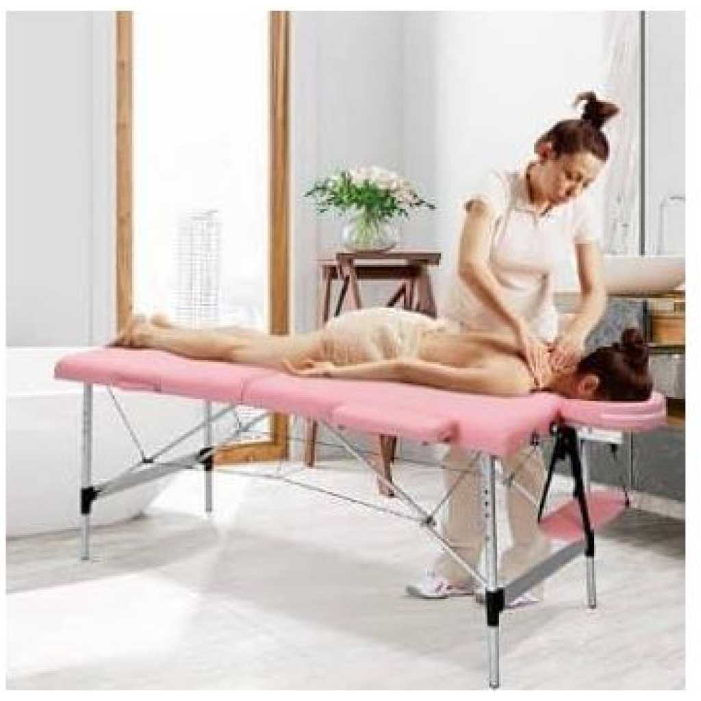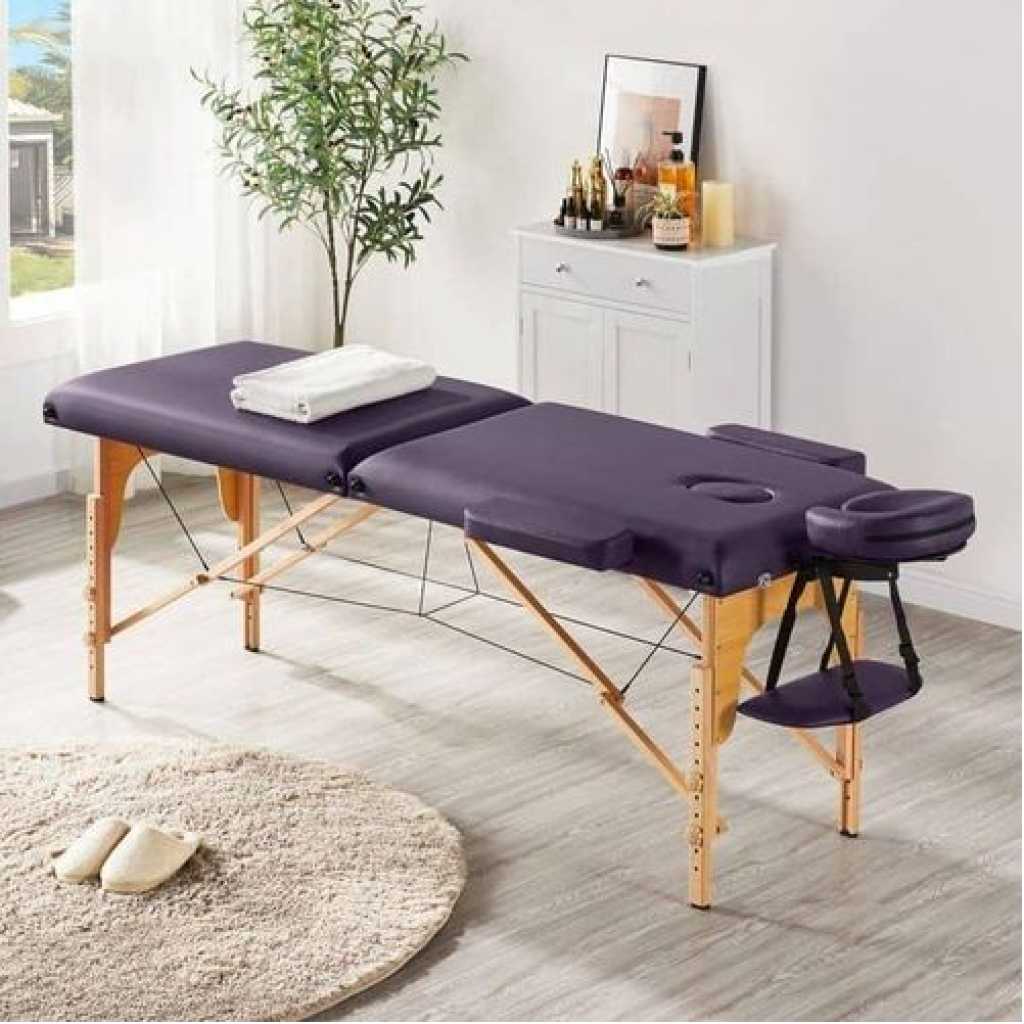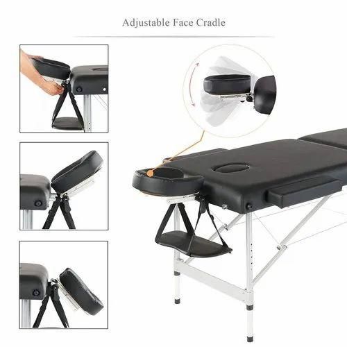 parameter product name: Massage Table Product material: leather fabric + stainless steel pipe Product Size Expanded size: 180x60x65cm Folded size: 90x60x18cm Product net weight: 11.06KG Head hole size: 18x12cm Product load: about 500KG Product usage beauty salon, health care center, SPA massage, etc. Use steps (free installation, detachable, easy to store) 1. Open the side metal lock 2. Turn on the massage table 3. Expand the bed 180 degrees 4. Place it steadily, ready to use Instructions Supine display: suitable for head/face care Prone display: application of comfortable back physiotherapy design concept High-quality eco-friendly leather: eco-friendly high-quality 5cm thick PU leather fabric, thick and high-elastic mattress Stainless steel pipe: use high-quality stainless steel pipe Metal lock buckle: The screw and metal lock buckle are designed in silver and white Rubber feet: made of rubber material, wear-resistant and durable, long service life Curved face pillow: Voucher opening design, smooth and comfortable, without damaging the skin Bold wire rope: wear-resistant and durable, stable and not shaking