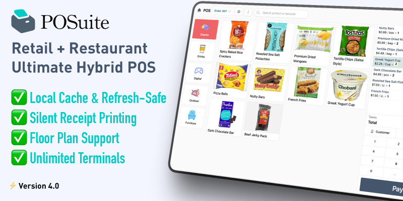 POSuite - Laravel POS Stock Management System. Ultimate Retail & Restaurant POS. Unlimited Terminals, Floor Plans, Silent Printing & Offline-Safe. Easy Setup.
