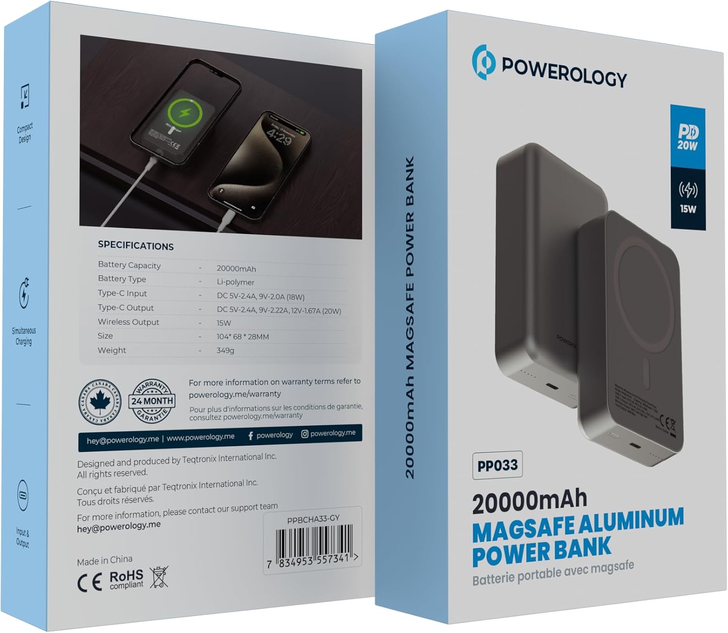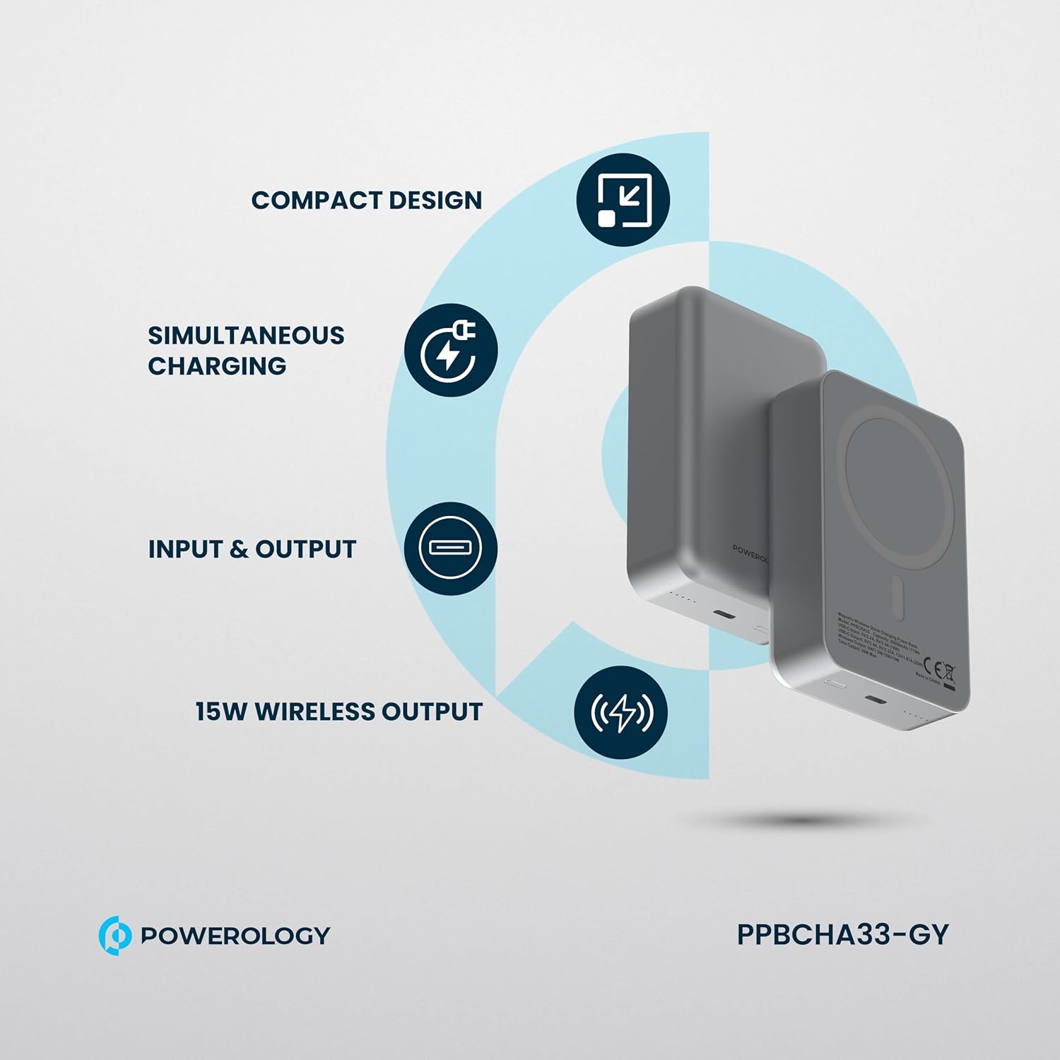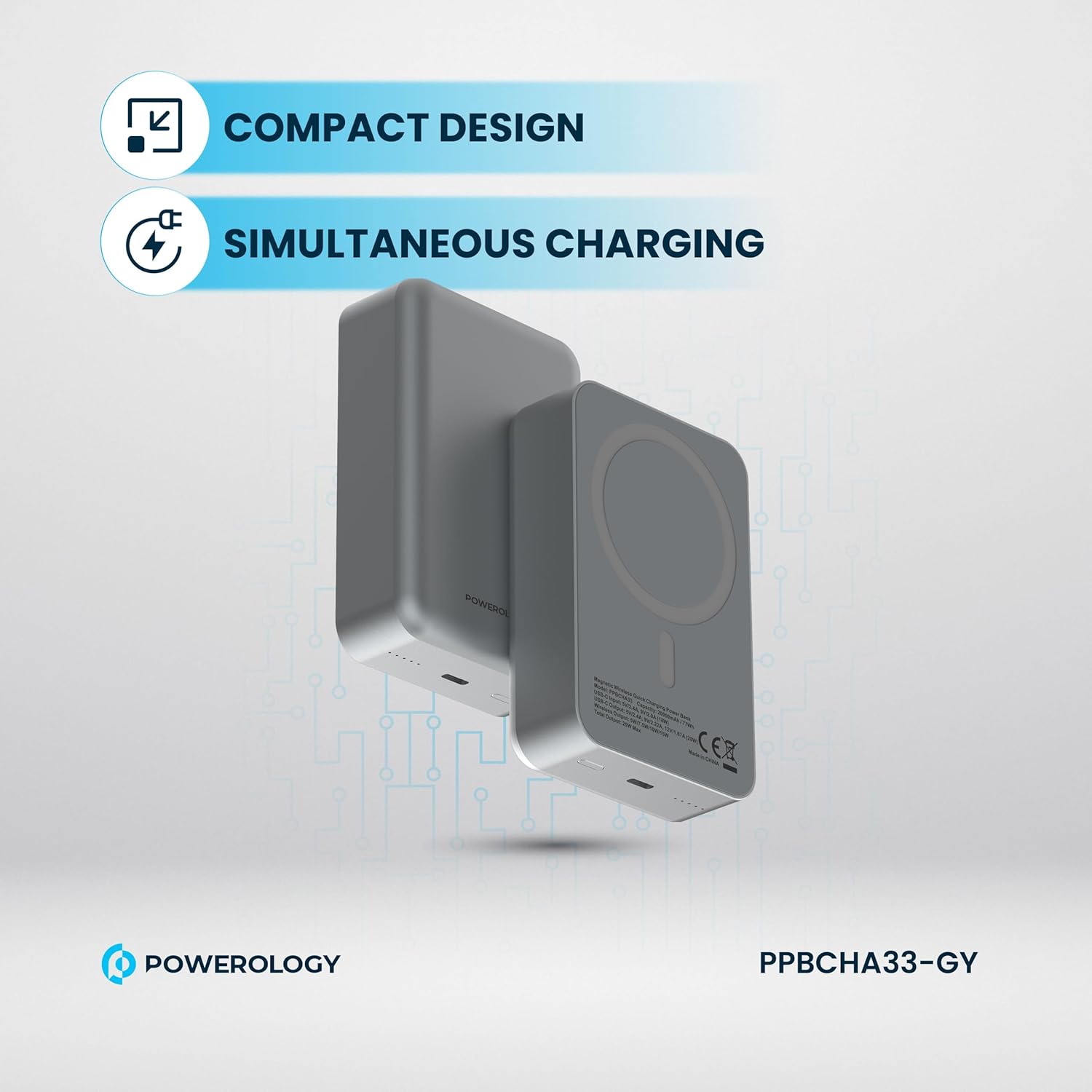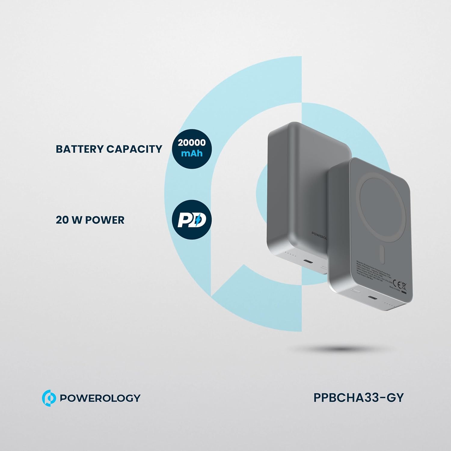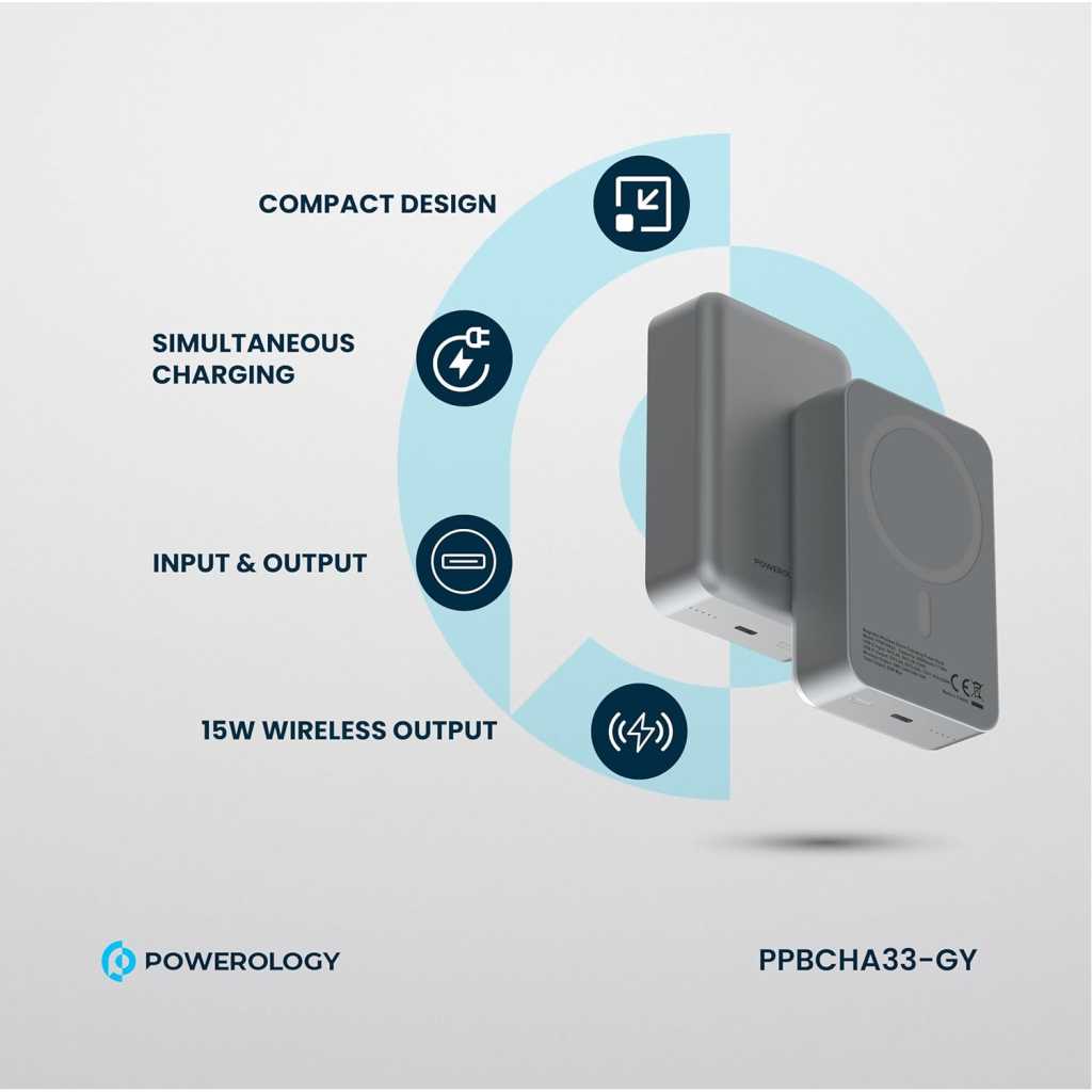 【 20000mAh 】Provides 20000mAh of power, perfect for charging multiple devices throughout the day. 【 】Supports fast wireless charging for MagSafe-compatible devices, offering convenience and efficiency. 【 & 】Charge multiple devices at once with fast charging technology for efficient power delivery. 【 】Built-in LED indicator to monitor battery level and ensure you’re always aware of your charge status. 【 】Ultra-light and portable design for easy travel and on-the-go use. 【 】Durable aluminum construction for added protection and a premium feel. 【 】The package includes Powerology 20000mAh Aluminum Power Bank, – , , and a + . Key Features: 【 20000mAh 】Provides 20000mAh of power, perfect for charging multiple devices throughout the day. 【 】Supports fast wireless charging for MagSafe-compatible devices, offering convenience and efficiency. 【 & 】Charge multiple devices at once with fast charging technology for efficient power delivery. 【 】Built-in LED indicator to monitor battery level and ensure you’re always aware of your charge status. 【 】Ultra-light and portable design for easy travel and on-the-go use. 【 】Durable aluminum construction for added protection and a premium feel. 【 】The package includes Powerology 20000mAh Aluminum Power Bank, – , , and a + .