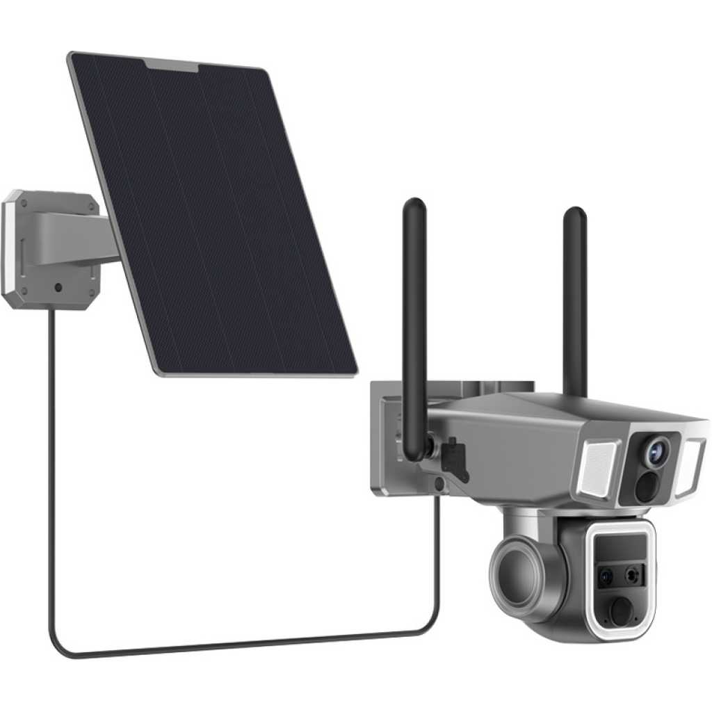 Key Features: 【 】Simultaneously captures with pan, tilt, and zoom features, ensuring comprehensive surveillance coverage from multiple angles. 【 】Whether you’re checking for security threats or just keeping an eye on your property’s perimeter, this feature ensures that no detail goes unnoticed, even from afar. 【 】Enhances night visibility with intense illumination, ensuring clear, detailed recordings in low-light conditions. 【- 】Supports continuous recording throughout the day, providing security coverage without interruption. 【 】Comes with a solar panel, allowing the camera to recharge naturally and maintain power for extended periods. 【- /】Enables communication through built-in audio and microphone, providing a hands-free solution for speaking or listening remotely. 【 /】Engineered for outdoor use, this camera withstands harsh weather conditions and dust, ensuring reliable performance in any environment. 【 】The package includes ° , , . , , / , a user manual for easy setup, infinite for ongoing support, and a + .