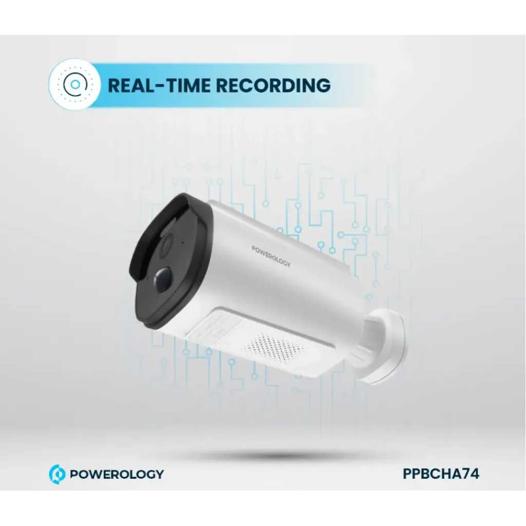 Powerology Built-in Solar Outdoor Camera 256GB 5200 mAh 20fps / IR Night Vision / Two-Way Audio / Motion Detection / 2K Quad HD Surveillance Camera / Dust Resistance / Mobile App Support (Android, iOS