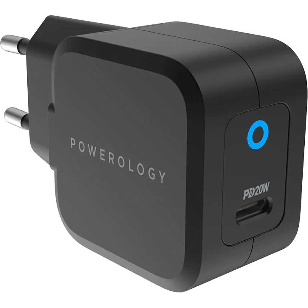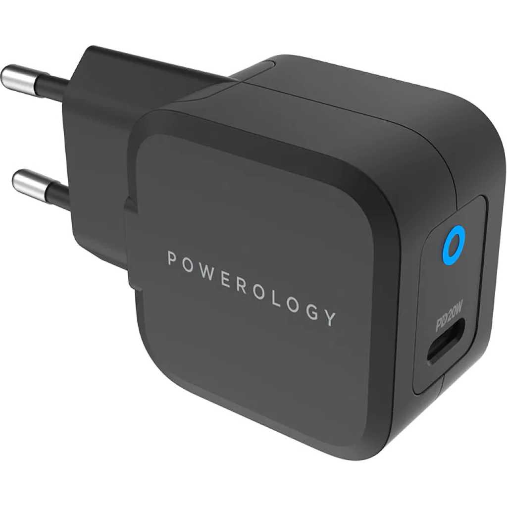 Powerology Ultra-Compact 20W PD GaN Charger – Black. Powerology ultra-compact 20W PD GaN charger is an efficient fast charging wall socket. It offers the best power delivery through its USB-C ports. LED indicator lights up to indicate the power is connected. With the advantage of GaNFast technology, this product can charge your devices in a fraction of the time. We have designed this product with two plug types for your convenience. Ultra-Compact Design The use of GaN material in the ultra-compact 20W GaN charger has saved space in this charger. As a result, the size of this product is small compared to similar products. It offers the same power delivery in a smaller size. Efficient and Powerful Charging Super-fast charging is a feature that includes in our ultra-compact 20W PD GaN charger. Using GaNFast technology you can charge your devices faster than the traditional chargers. This product can charge your device from 0% to 60% in 35 minutes. Multi-Regional Plugs For our customer convince we offer a variety of plugs. The Powerology ultra-compact 20W PD GaN charger comes in two plug designs. We have included both EU 2-pin and 3-pin UK plugs. Safety and Protection This smart compact 20W PD GaN charger can automatically determine suitable power for your device. This can assure you that your device receives the safest charging speed. Also, it has built-in protection against overheating, overvoltage, and overcharging. Features Charges your phone and iPad from 0%-60% in 35 Minutes Output: DC 5V/3A 9V/2.22A 12V/1.67A PowerDash Fast & Efficient Charge Input: AC 100-240V 50/60Hz USB-C Fast Charging UK 3Pin Plug Specification Port : USB Type-C Fast Charger : Yes Plug : UK 3Pin Plug Wattage : 20W Surface : Matt Surface Input : AC 100-240V 50/60Hz Output : DC 5V/3A 9V/2.22A 12V/1.67A Compatible Devices : Cellular Phones, MacBook, Tablets, iPods Dimension : 4.2 x 2.9 x 4.2 cm Weight : 95 Grams Color : Black Key Features: Powerology Ultra-Compact 20W PD GaN Charger – Black. Features Charges your phone and iPad from 0%-60% in 35 Minutes Output: DC 5V/3A 9V/2.22A 12V/1.67A PowerDash Fast & Efficient Charge Input: AC 100-240V 50/60Hz USB-C Fast Charging UK 3Pin Plug Specification Port: USB Type-C Fast Charger: Yes Plug: UK 3Pin Plug Wattage: 20W Surface: Matt Surface Input: AC 100-240V 50/60Hz Output: DC 5V/3A 9V/2.22A 12V/1.67A Compatible Devices: Cellular Phones, MacBook, Tablets, iPods Dimension: 4.2 x 2.9 x 4.2 cm Weight: 95 Grams Color: Black