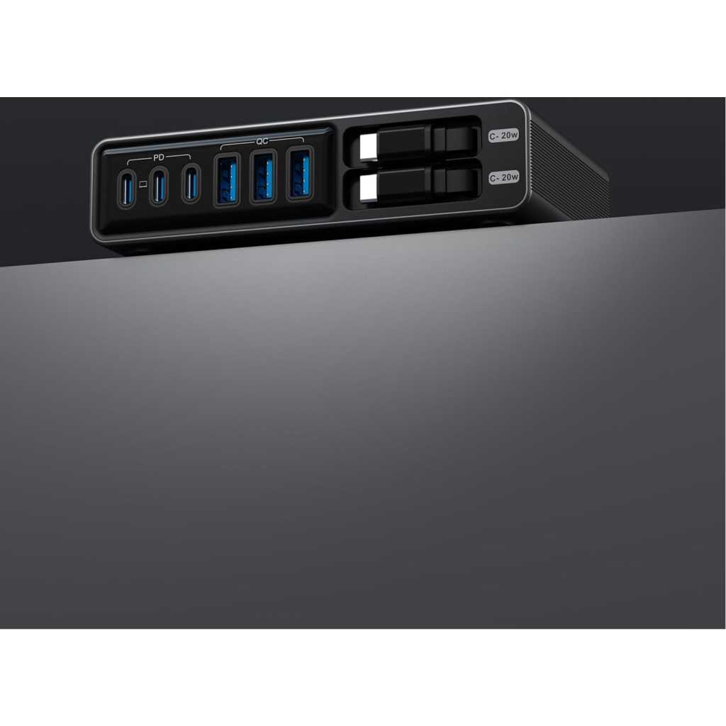 The Powerology Univo Charging Station PD 100W is basically an unbeatable and powerful charging option, which is capable of charging any of your devices. Providing a great 320W total output, the station is able to charge multiple batteries of any device simultaneously, from smartphones and tablets to laptops. The USB-C1/C2 ports give a very quick charge with a full power of 100W, while on the other hand, the extra USB-C3/C4/C5 and USB-A1/A2/A3 ports are capable of providing up to 20W each, thus making sure that your devices get powered very fast and in a very efficient way. The artificial intelligence of the GaN technology provides the best performance and power saving; at the same time, the smart charging capability changes the power output according to the device’s demands. Being equipped with state-of-the-art safety features, the charging station prevents your devices from getting overcharged or overheated. Easily fitting in your bag, this compact charging station is suitable for use at home or in the office and provides universal protocol support and device compatibility for a wide range of products, even laptops.