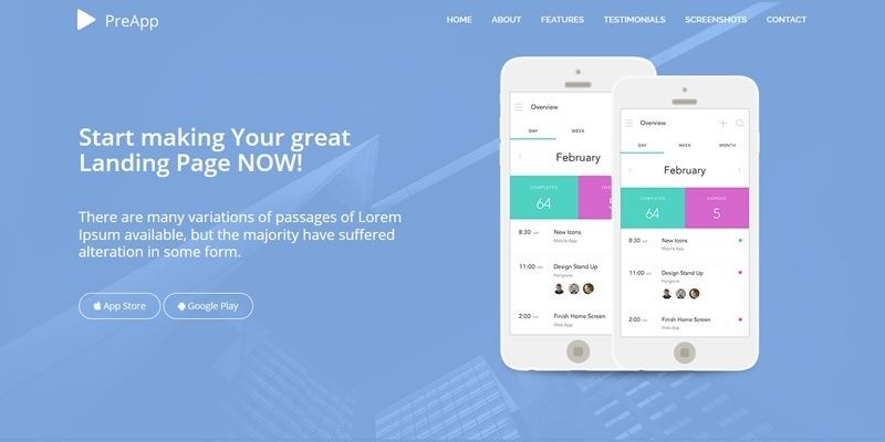 PreApp - App Landing Page HTML Template. Application Landing Page Template