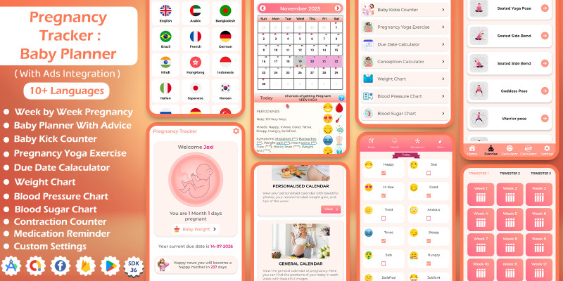 Pregnancy Tracker - Android App Source Code. Pregnancy Tracker & Baby Planner Android App to track week-by-week progress, baby growth, and pregnancy milestones.
