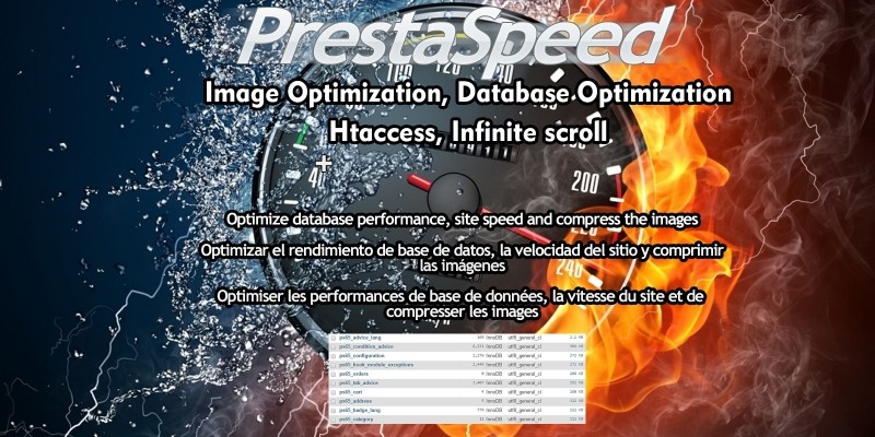 PrestaSpeed - PrestaShop Image Optimization Module. PrestaSpeed optimize your Prestashop database, images and configuration to increase the front office and back office access speed.