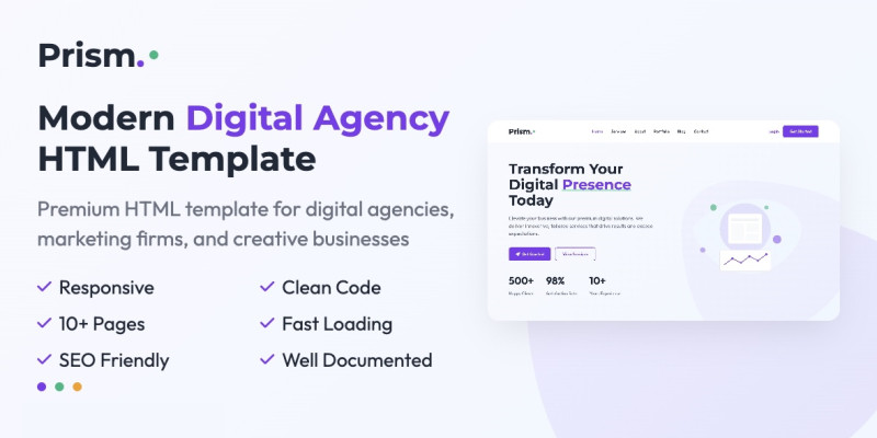 Prism - Responsive Multipurpose HTML5 Template. A modern, fully responsive HTML5 template designed for digital agencies, tech companies, and professional service businesses