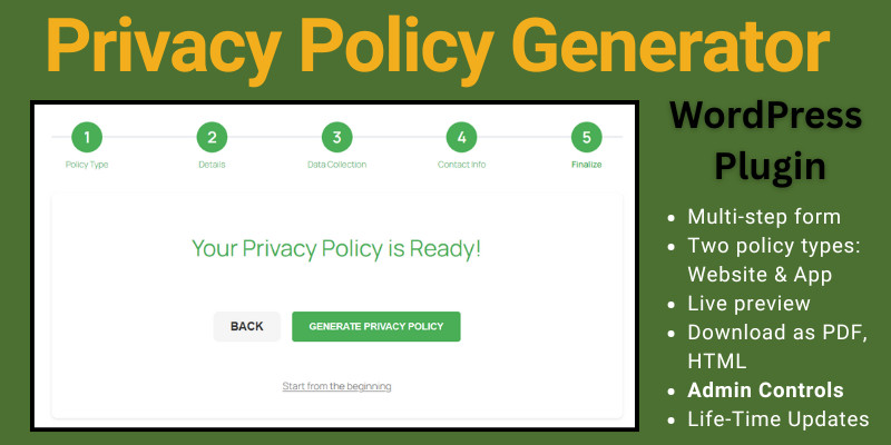Privacy Policy Generator WordPress Plugin. Generate GDPR/CCPA-compliant privacy policies for websites & apps in minutes with this easy WordPress plugin.