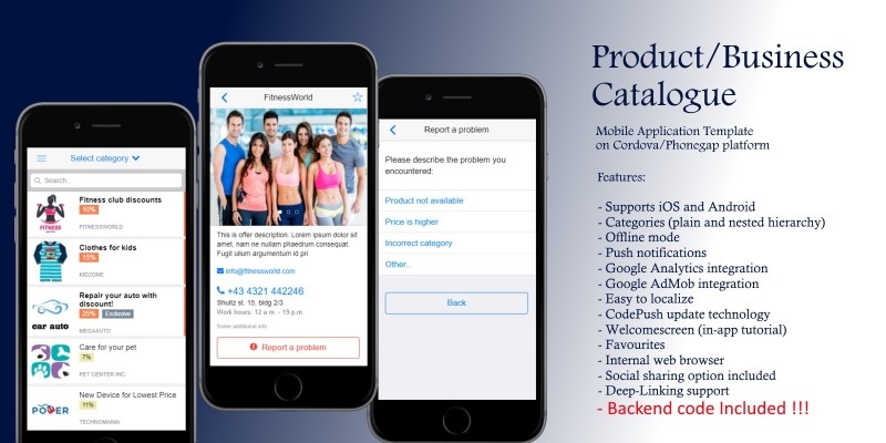 Product Catalog And Backend - Cordova App Template. A complete jump-start kit for building any type of business/e-commerce catalogues. This bundle includes backend code!