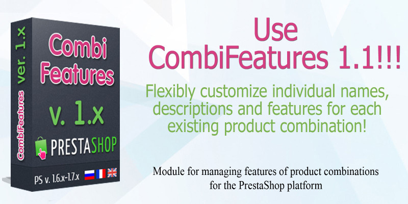 Product Combination Features - PrestaShop. This module allows to assign a different name, short/full description and features for each combination of product in the store.
