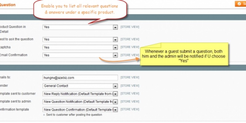 Product Question - Magento Extension. This Product Question extension allows customers to ask questions directly on a specific product page.