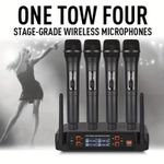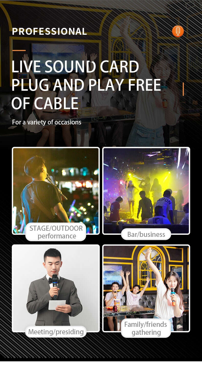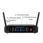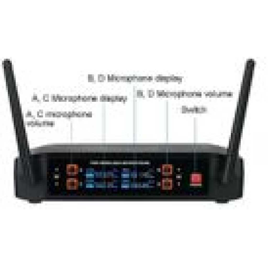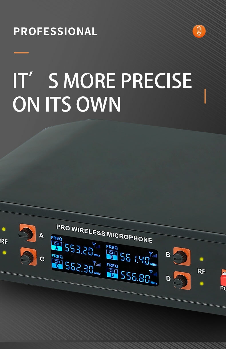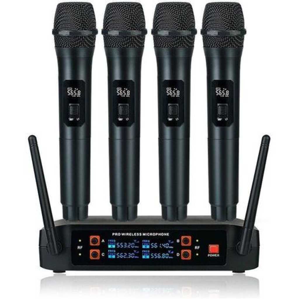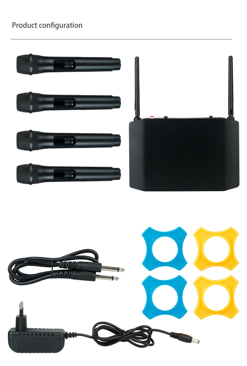 4 four channels vhf handheld karaoke wireless microphone receiver boards 1. [UHF MICROPHONE SYSTEM]Using UHF fixed high-frequency line design, avoid the frequency of interference easily. Deliver clear, robust, optimal true sound. 2.[LONG DISTANCE]Up to 160ft long range in wide open space line of sight. Upgraded wireless signal acquisition,2 antennas installed on the back of the receiver to enhance the received signal, ensuring high frequency stability and accuracy. 3. [HIGH QUALITY]Lightweight 4 handheld wireless mics with individual volume control for each channel enabling precise vocal balancing. Brushed metal design receiver for optimum aesthetics and durable long life. 4. [WIDE COMPATIBILITY] Four XLR outputs & one 1/4”(6.35mm) mix output to connect this versatile system to most amplifiers/mixers/powered speaker on market. Plug-and-go easy setup. Are you ready to break free from the constraints of cords and amplify your voice with crystal-clear precision? Introducing our Wireless Vocal Microphone Set – the ultimate companion for singers, presenters, and karaoke enthusiasts. Step into a world of wireless excellence, where your voice takes center stage with every performance. Description : Cut the cords, not the performance! Our microphone set provides a wireless range that allows you to move freely on stage, ensuring you deliver a captivating performance without being tethered to cables. Feel the liberation of wireless convenience. Let your voice shine! Our microphone set features high-quality audio transmission, capturing the nuances of your voice with exceptional clarity. Whether you’re singing, presenting, or hosting a karaoke night, enjoy professional-grade sound that wows your audience. Say goodbye to constant battery replacements! It provides long-lasting power for extended performances. Enjoy the convenience of a microphones and never miss a note or word. No technical hassles here! Our microphone set is designed for easy and quick setup. Simply connect the receiver to your sound system, pair the microphones, and you’re ready to amplify your voice. Spend less time troubleshooting and more time performing From stage performances to corporate presentations and karaoke nights, our wireless microphone set caters to diverse occasions. Be the star of the show, captivate your audience, and enjoy the flexibility to use it in various settings. Built to last through countless performances. Our microphones are crafted with durability in mind, ensuring they withstand the rigors of live events. Focus on your performance without worrying about equipment failures. Whether you’re a professional musician, public speaker, or karaoke enthusiast, our Wireless Vocal Microphone Set is the perfect tool to amplify your voice and make a lasting impression. Give the gift of wireless performance! Our microphone set makes an excellent present for musicians, speakers, and anyone who loves to shine on stage or at home karaoke parties.