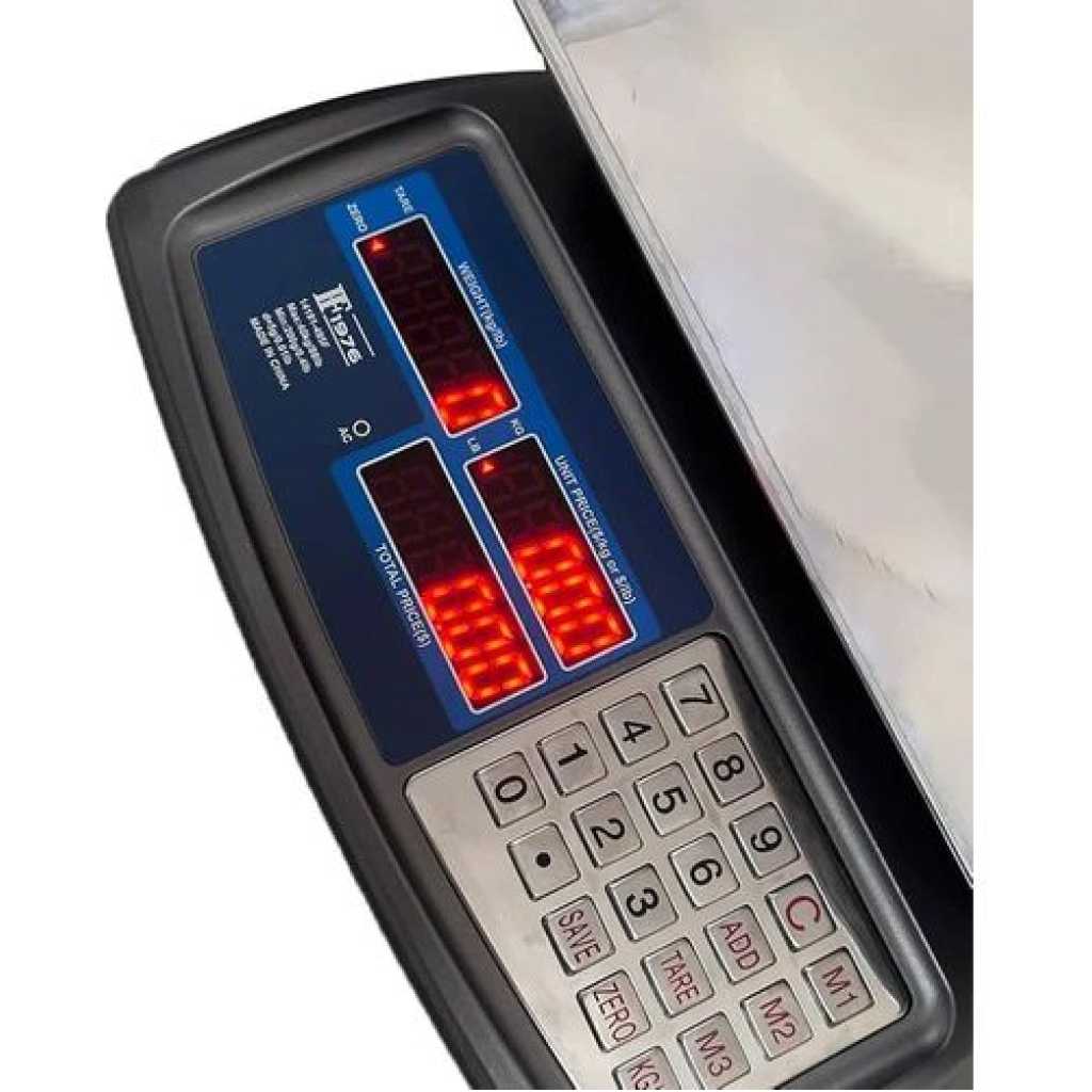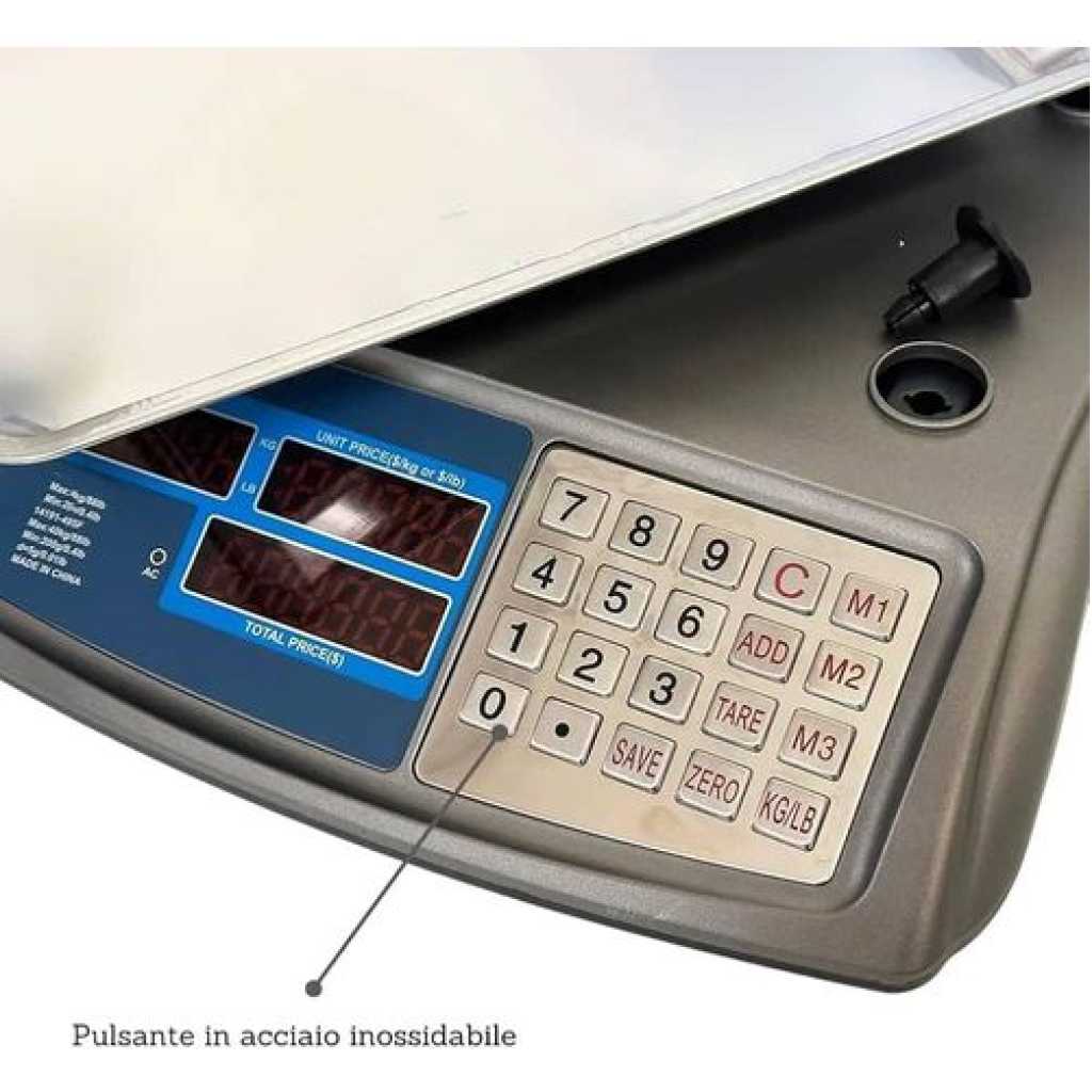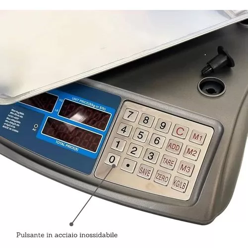 Key Features: ADVANCED ACCURACY: Equipped with a high-precision digital weighing system, this professional scale provides accurate and reliable results from 5g to 40kg, making it perfect for a wide range of applications, both domestic and commercial. VERSATILITY FOR ALL REQUIREMENTS – Ideal for professional kitchens, pizzerias, bakeries, cold cuts and fruit and vegetable shops, the scale has a maximum capacity of 40kg and can easily weigh small ingredients and large items. STYLISH & FUNCTIONAL DESIGN – Compact size (13.6 x 12.8 x 4.9 inches), this scale fits perfectly in any environment, maximizing space without sacrificing style. EASY TO READ LCD DISPLAY – Large backlit LCD display ensures clear and simple weight reading in all light conditions. Also includes a screen for the customer, which increases transparency in business transactions. Durability and comfort of use: Powered by a rechargeable battery for extended use and equipped with non-slip rubber feet, this scale ensures stability and durability, ensuring an optimal using experience in any situation.