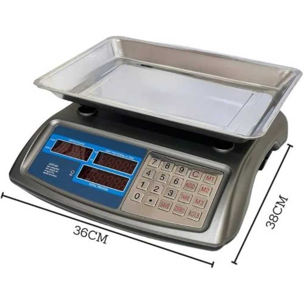 Professional Electronic Digital Price Computing Scale 88lb/40kg Commercial Food Weighing Scale for Produce Meat with Stainless Steel Large Platform, LCD Display, And Green Bright Backlight For Food An