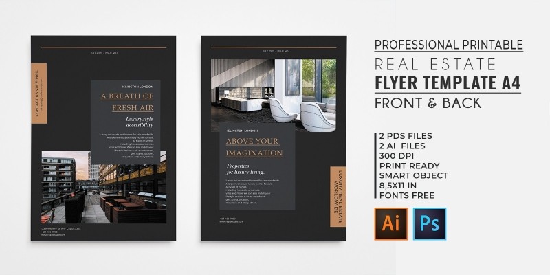 Professional Elegant Real Estate Flyer. Professional Elegant Real Estate Flyer - Printable Template International A4 - PSD - AI