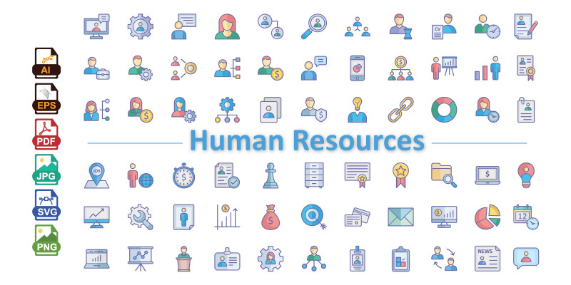 Professional Human Resources Icons. HR icons illustrating recruitment, onboarding, payroll, and more—perfect for apps, dashboards, and internal communication tools.