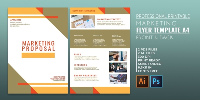 Professional Marketing Flyer 2 Templates A4. Professional Marketing Flyer - 2 Printable Templates International A4 Size. CMYK – Print Ready Colors