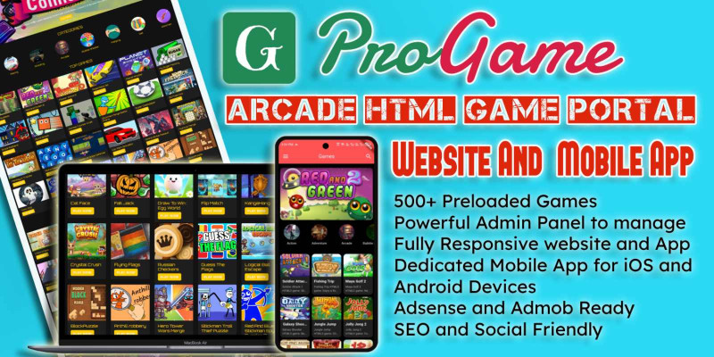 ProGame - Arcade HTML Game Portal Website and App. ProGame - Arcade HTML Game Portal Website with Mobile app for iOS and Android Devices