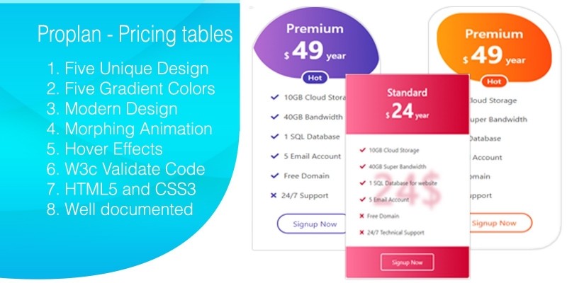 Proplan - Unique Modern pricing tables. Proplan - is a fully responsive modern html pricing tables.